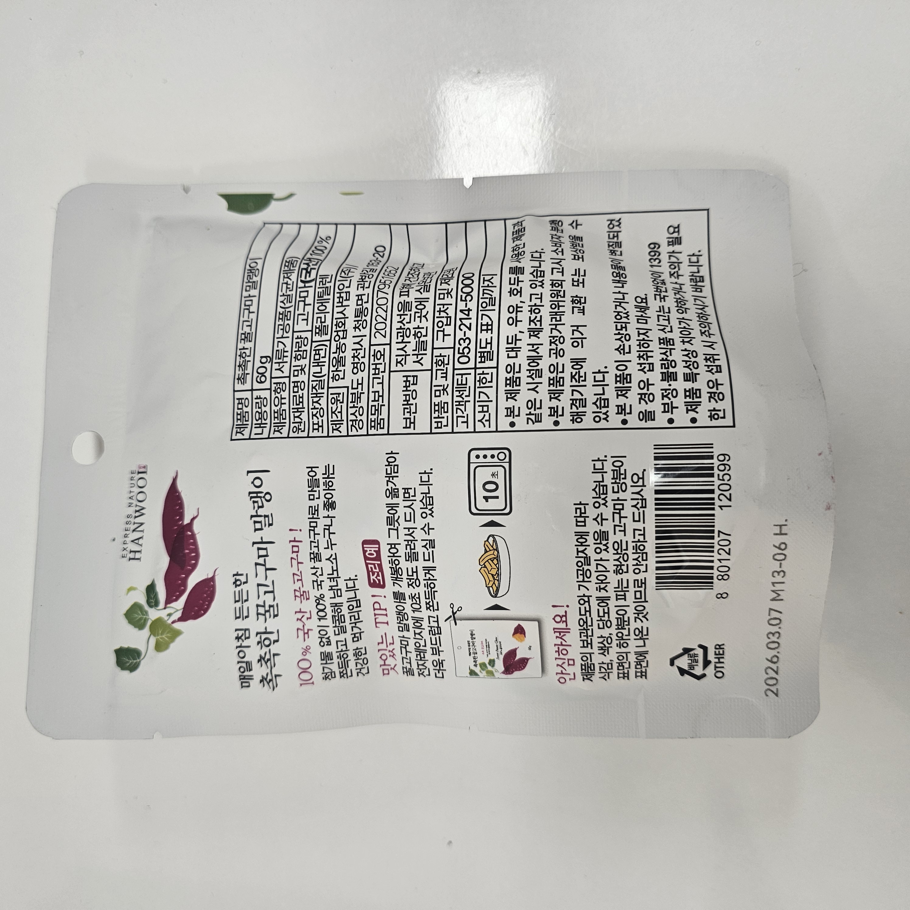 국산 고구마 이외엔 아무것도 첨가하지 않았다고 하네요!