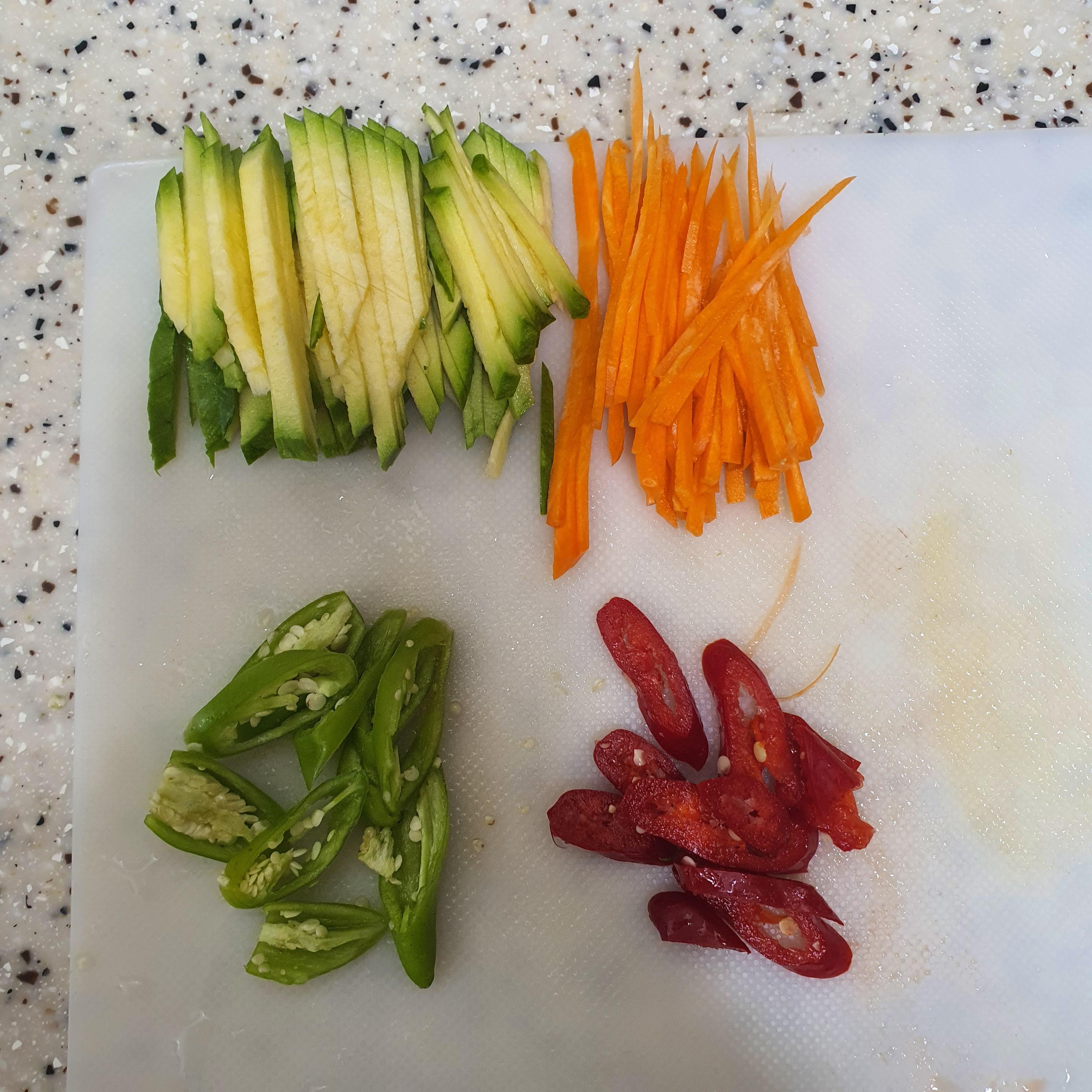 바지락칼국수에 들어갈 애호박, 당근, 청고추, 홍고추를 손질해주었습니다.