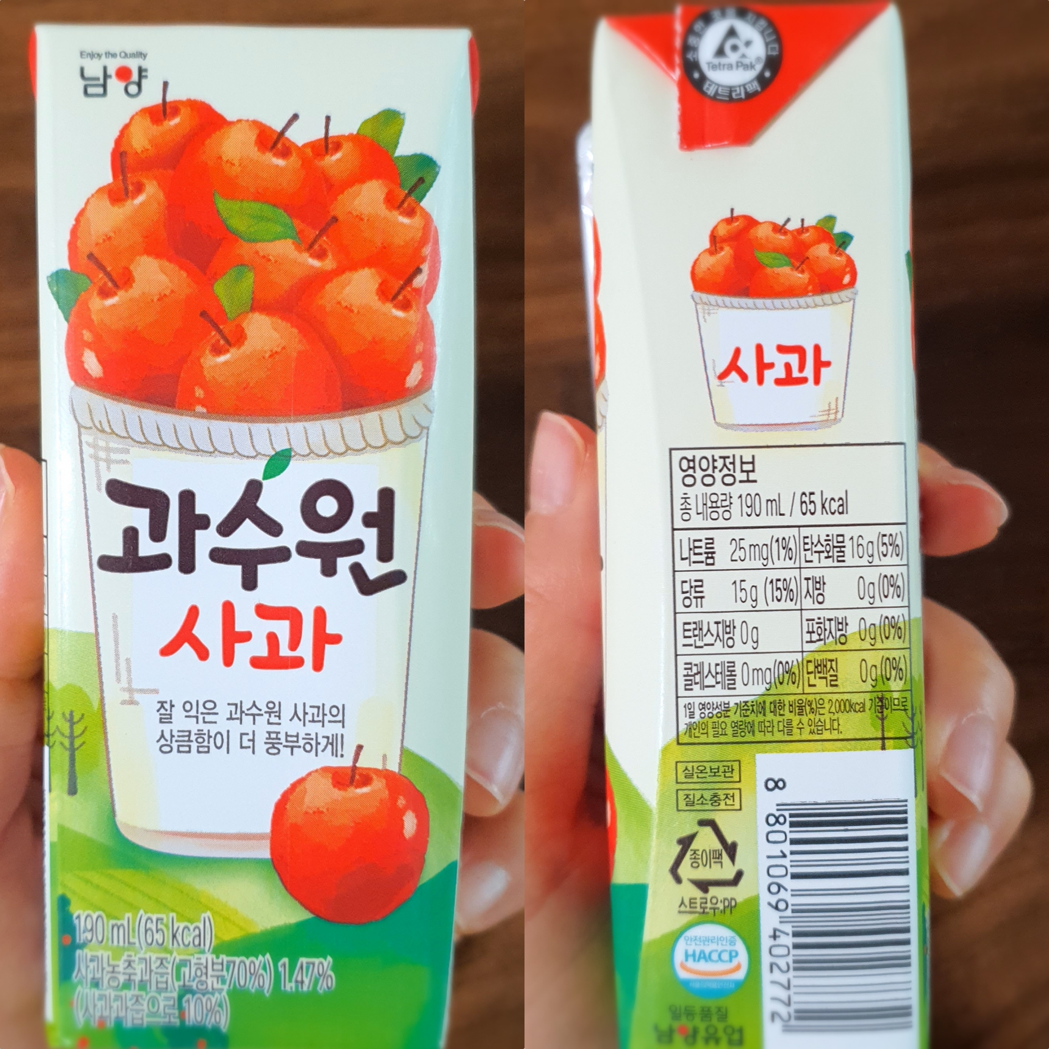 최근에 이 남양 회사에서 판매하는 과수원 팩음료를 구매했습니다.