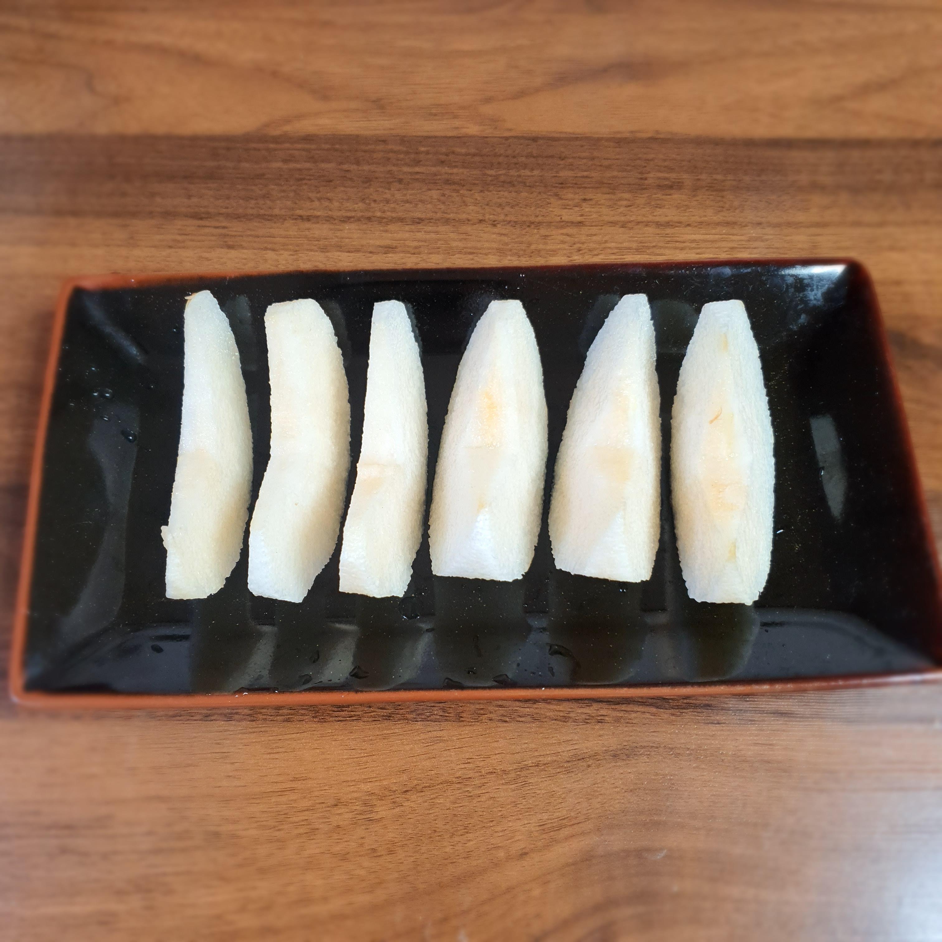 밥 먹고 후식으로 배를 먹었습니다.