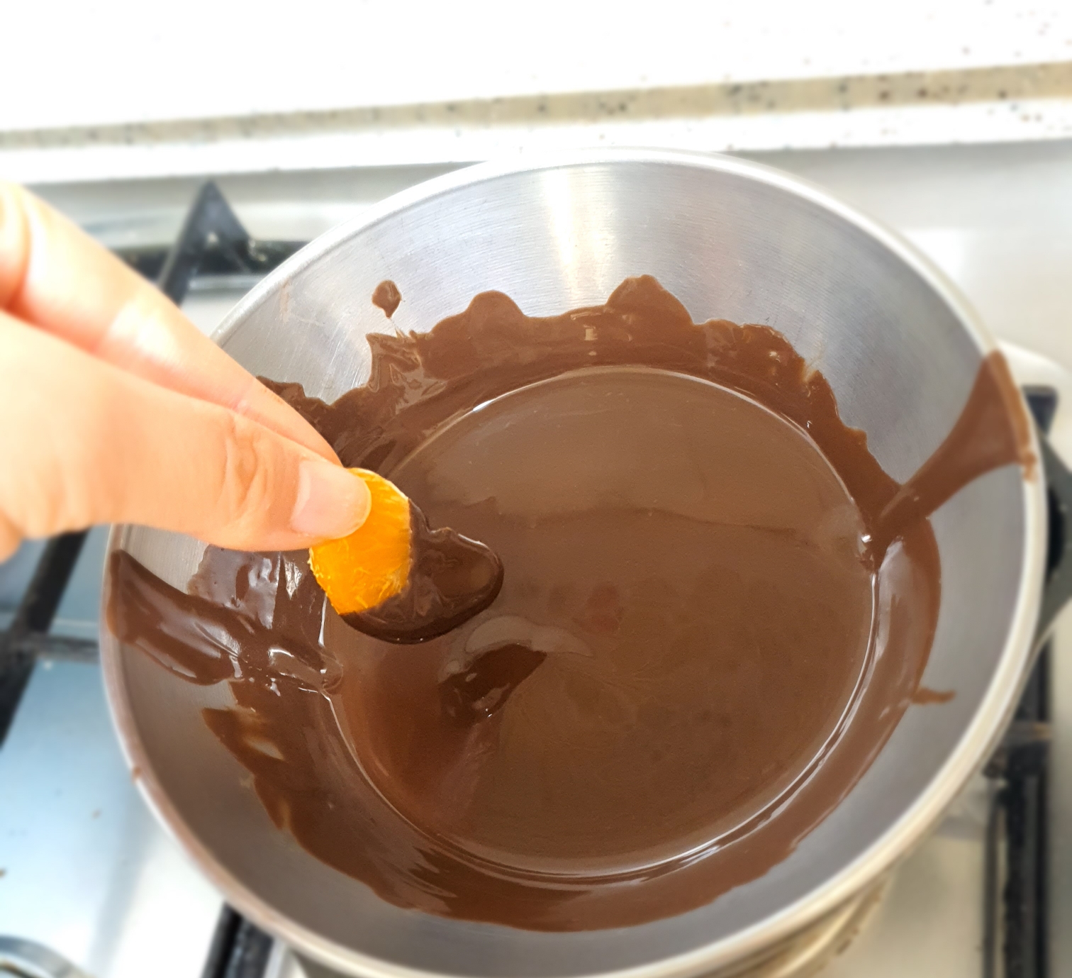 아까 손질해 둔 귤을 초콜릿에 퐁당해줍니다.