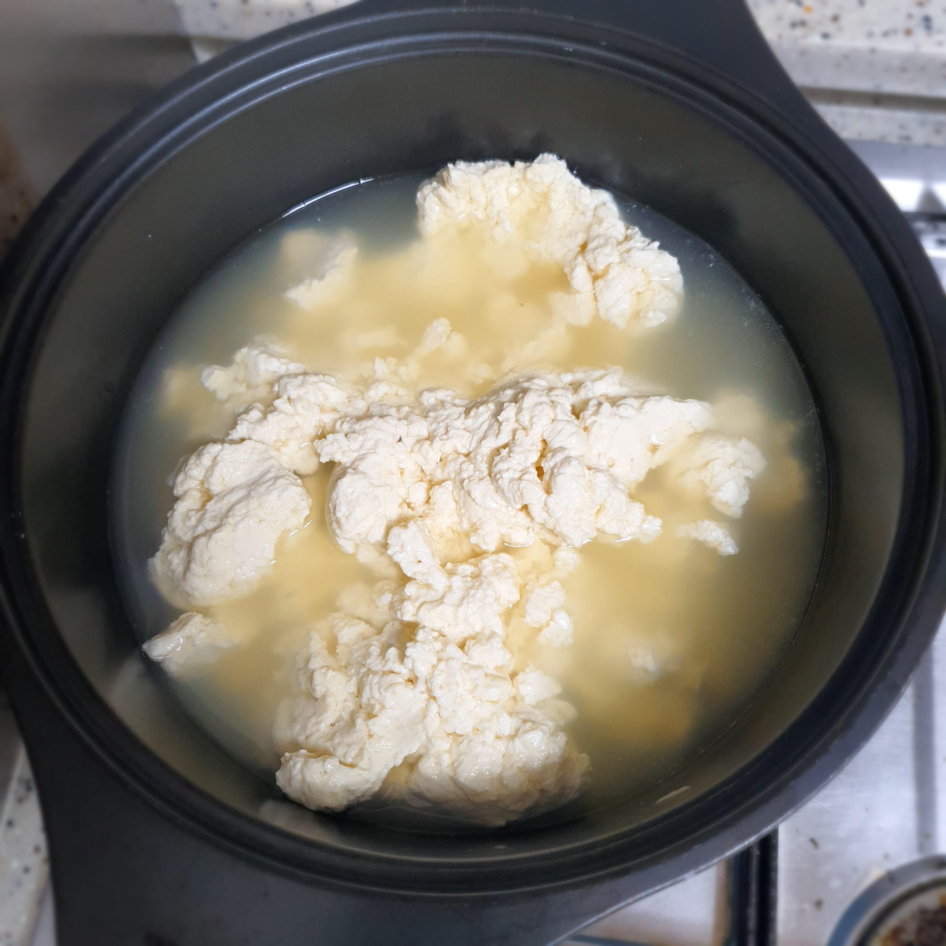 끓으면 뭉쳐있는 두부들을 깨주고 보글보글 더 끓여줍니다.