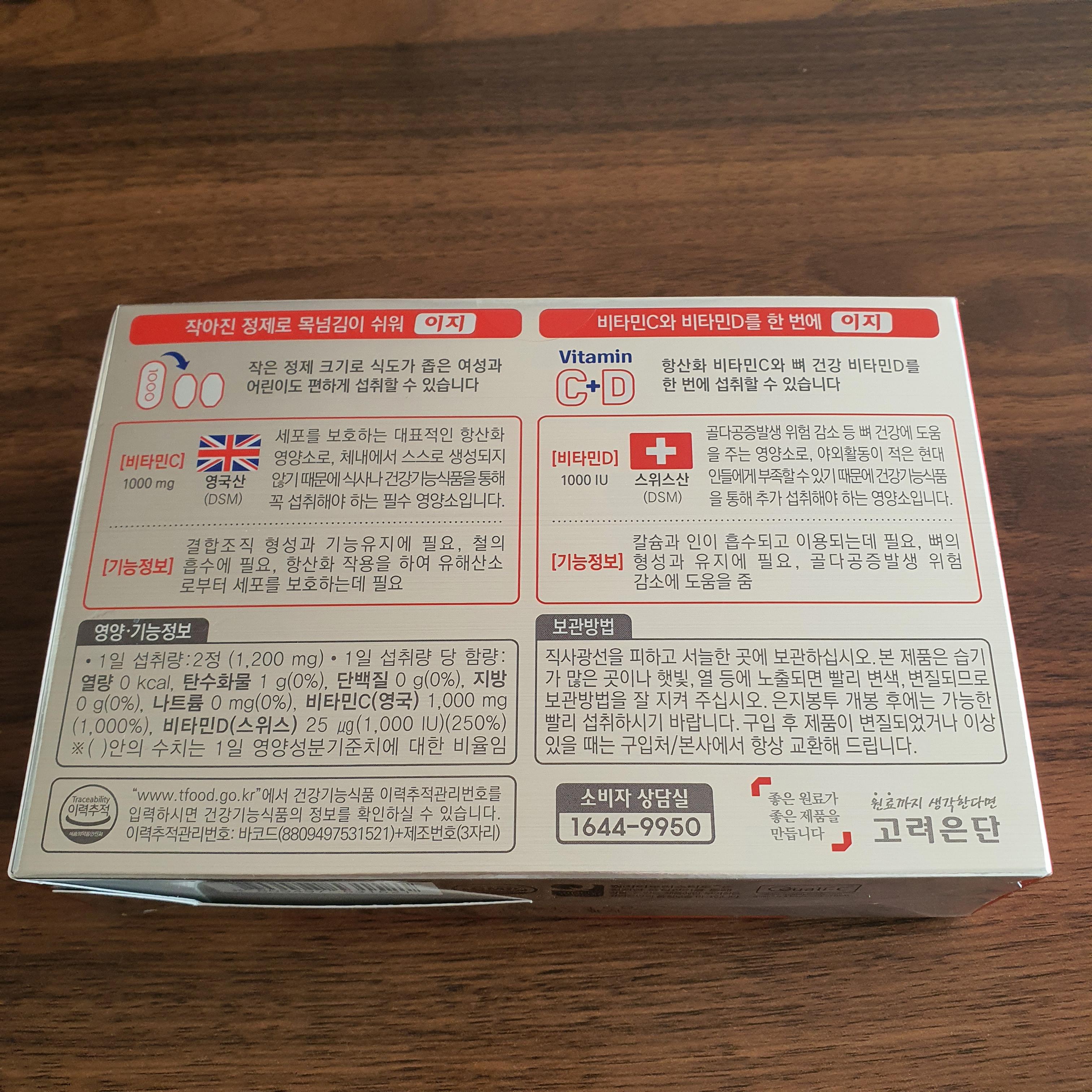 이번에는 "고려은단 비타민C 1000이지 + 비타민D"에 대해 작성하겠습니다.