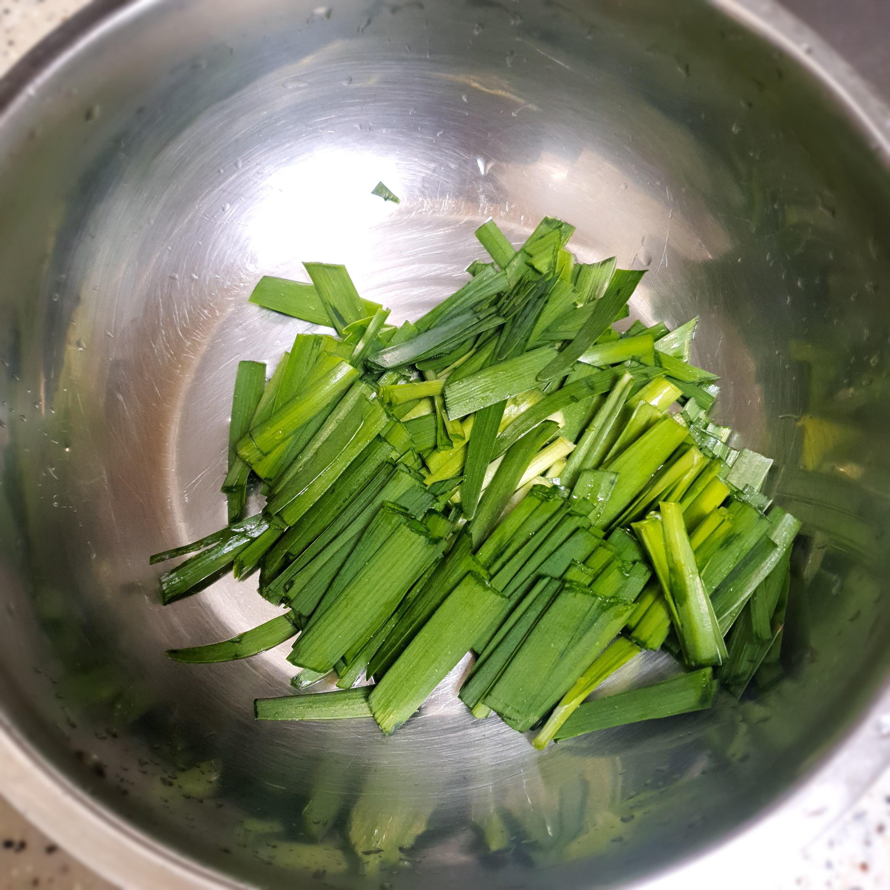 무침용 그릇에 손질한 부추를 넣어줍니다.