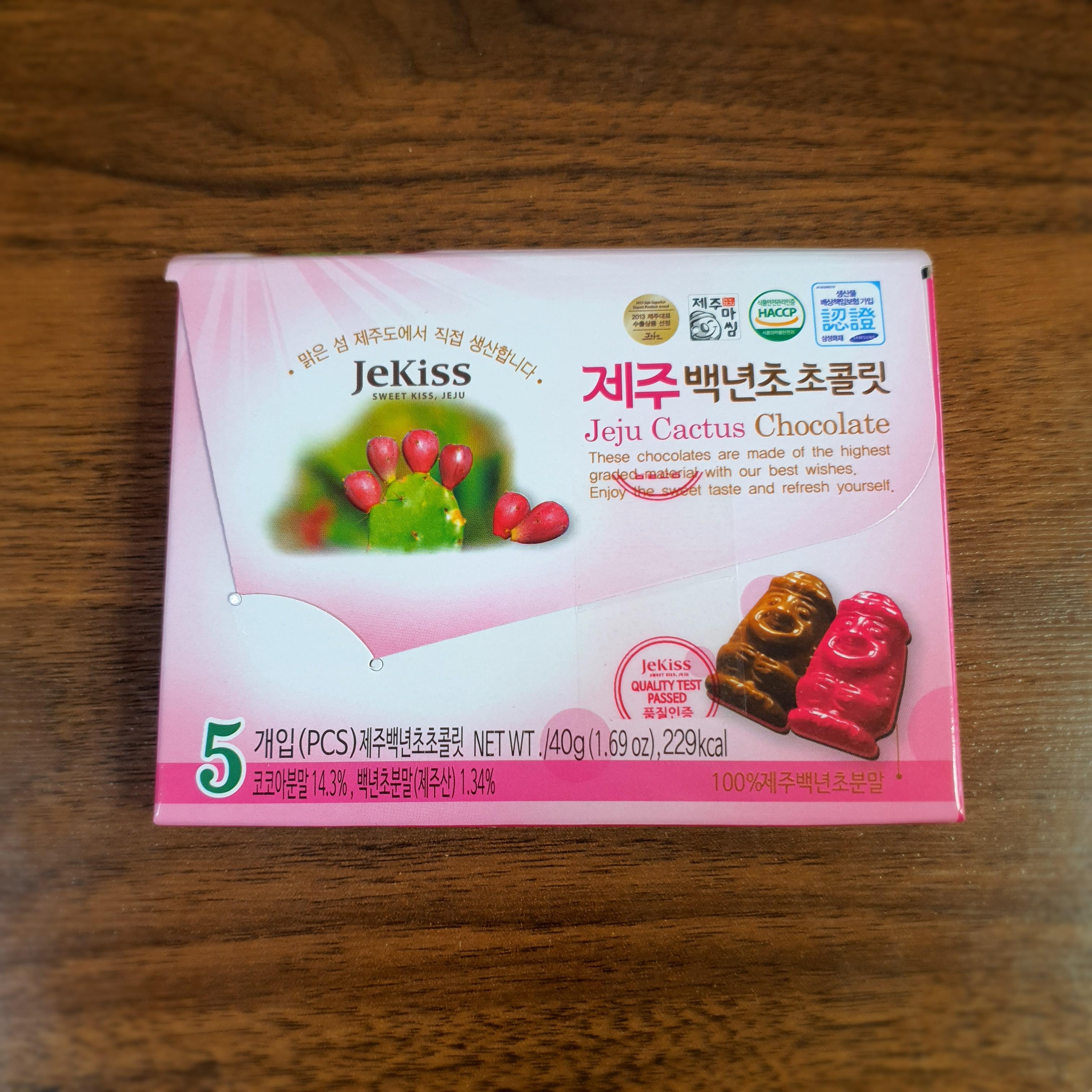 제주 백년초 초콜릿은 40g에 229kcal입니다.