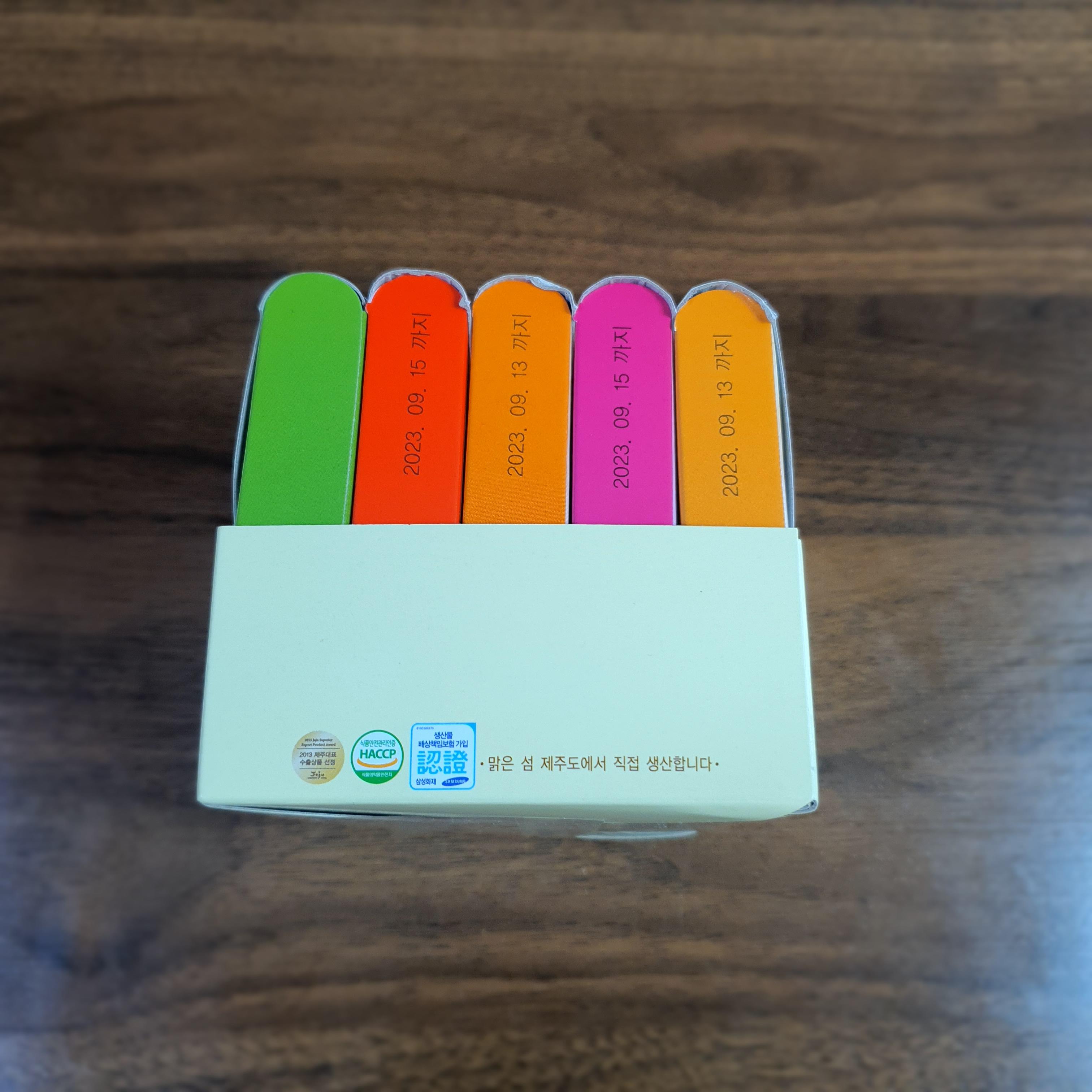 맛마다 포장지 양쪽 색이 다 다릅니다.
