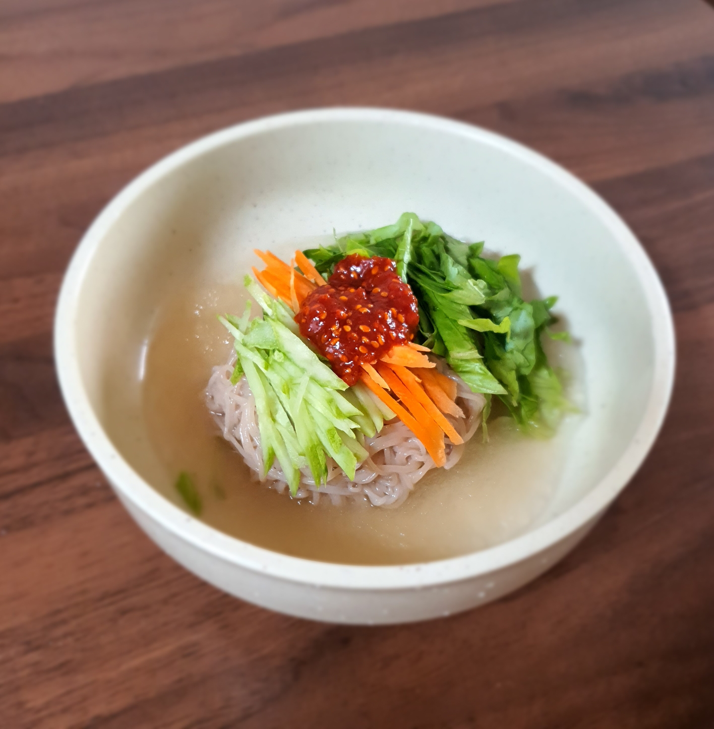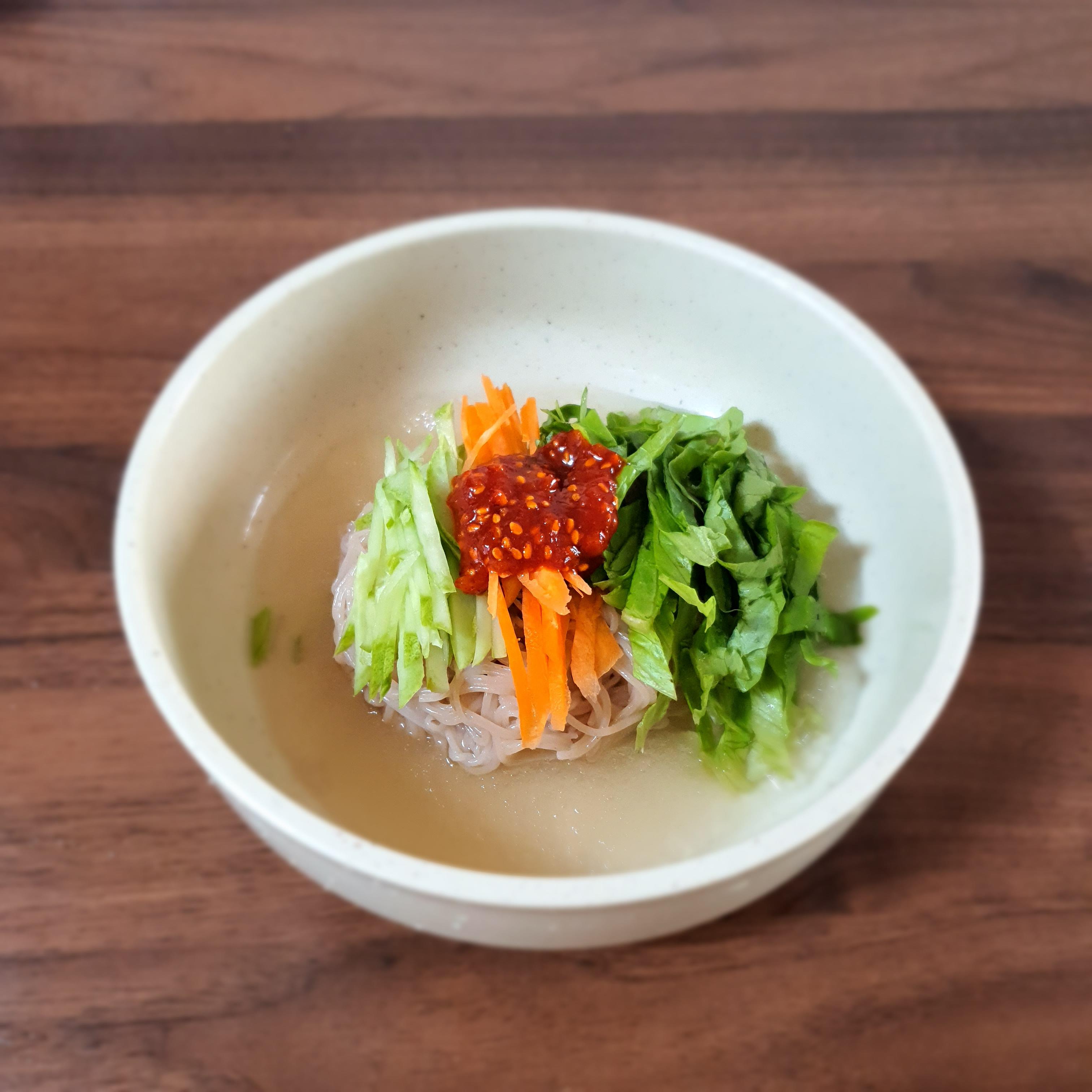 (육수를 살짝 얼려서 살얼음으로 만들면 더 시원하고 맛있습니다.)