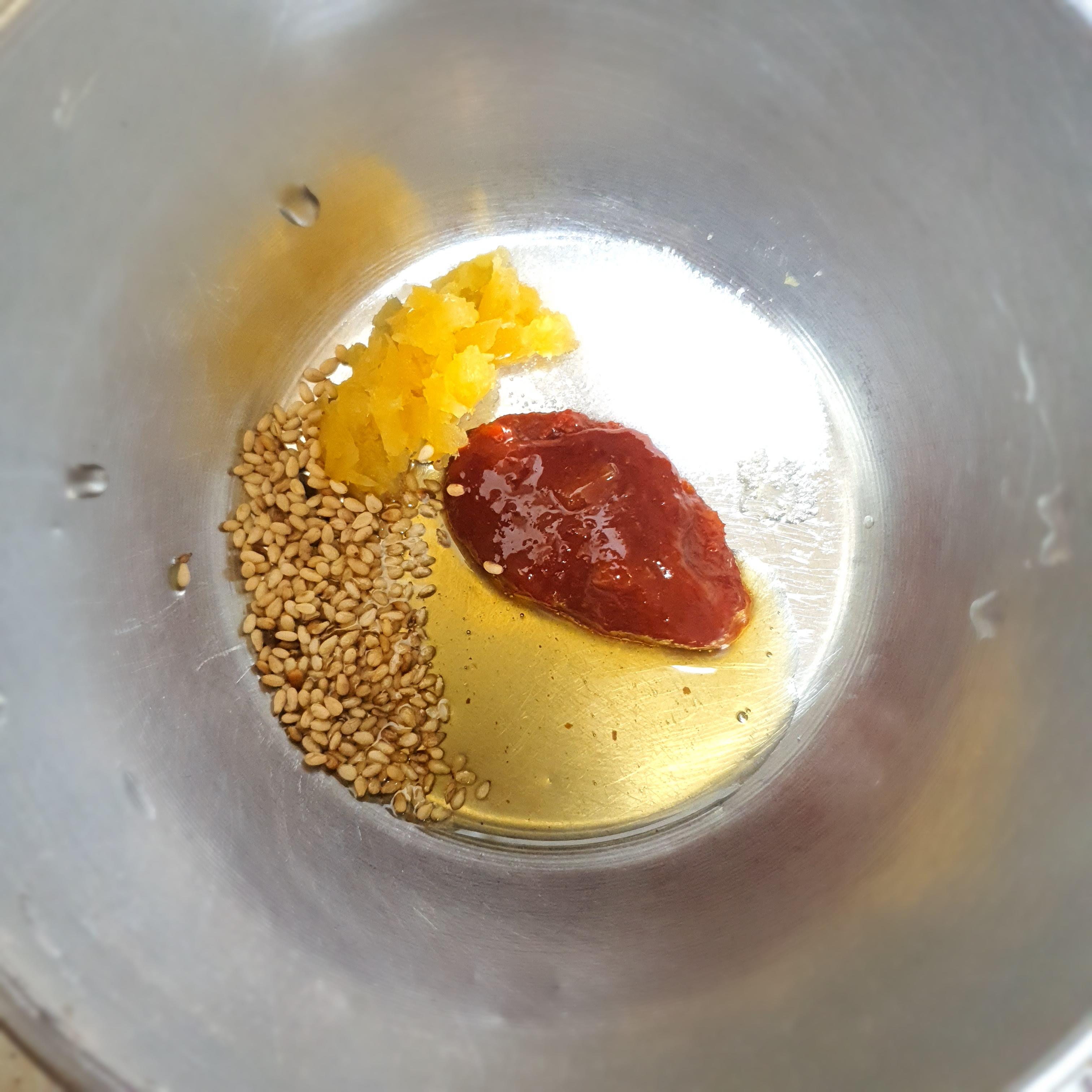 고추장1 설탕1 마늘1 깨1 참기름1 넣고 만들었습니다.