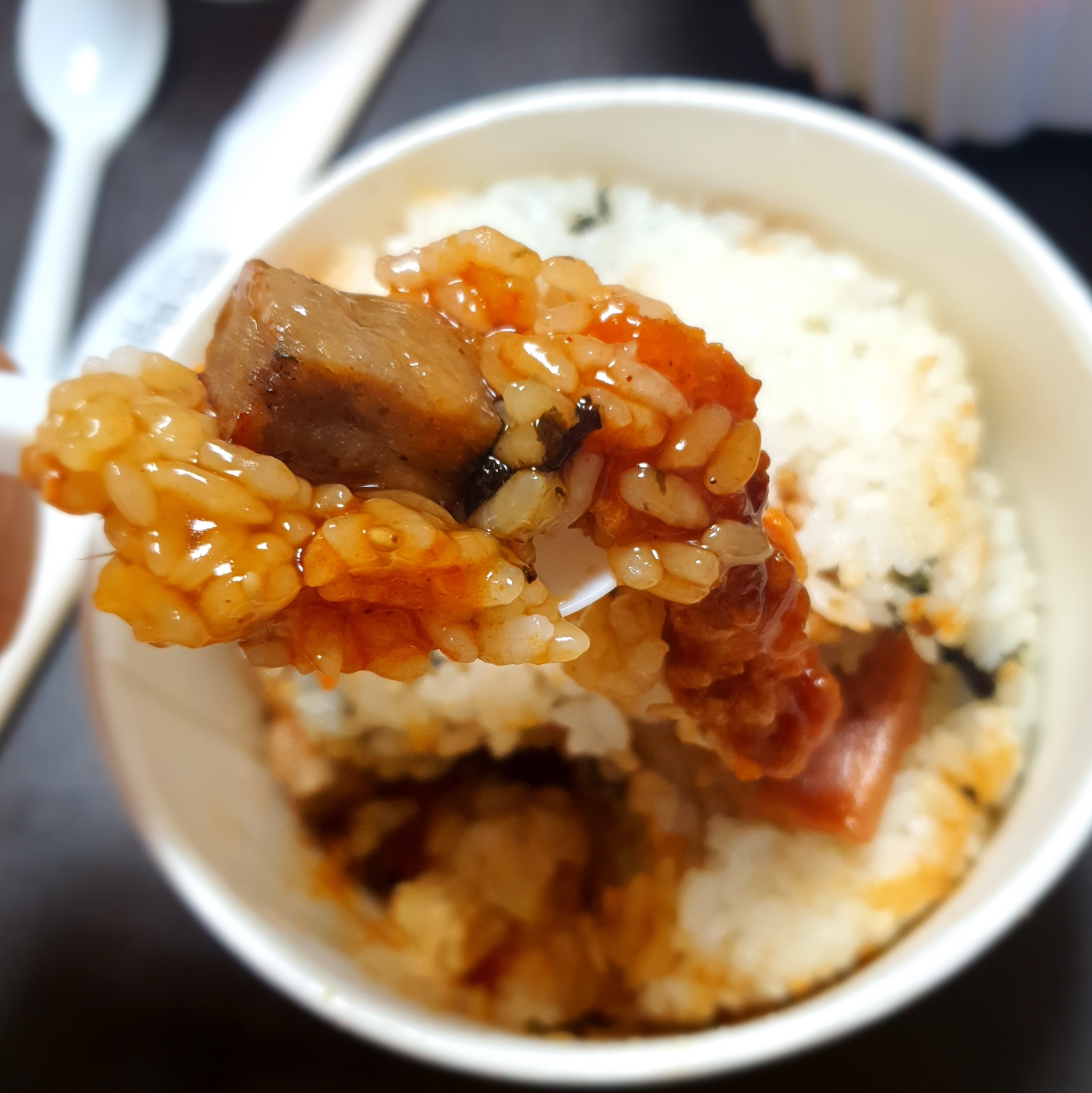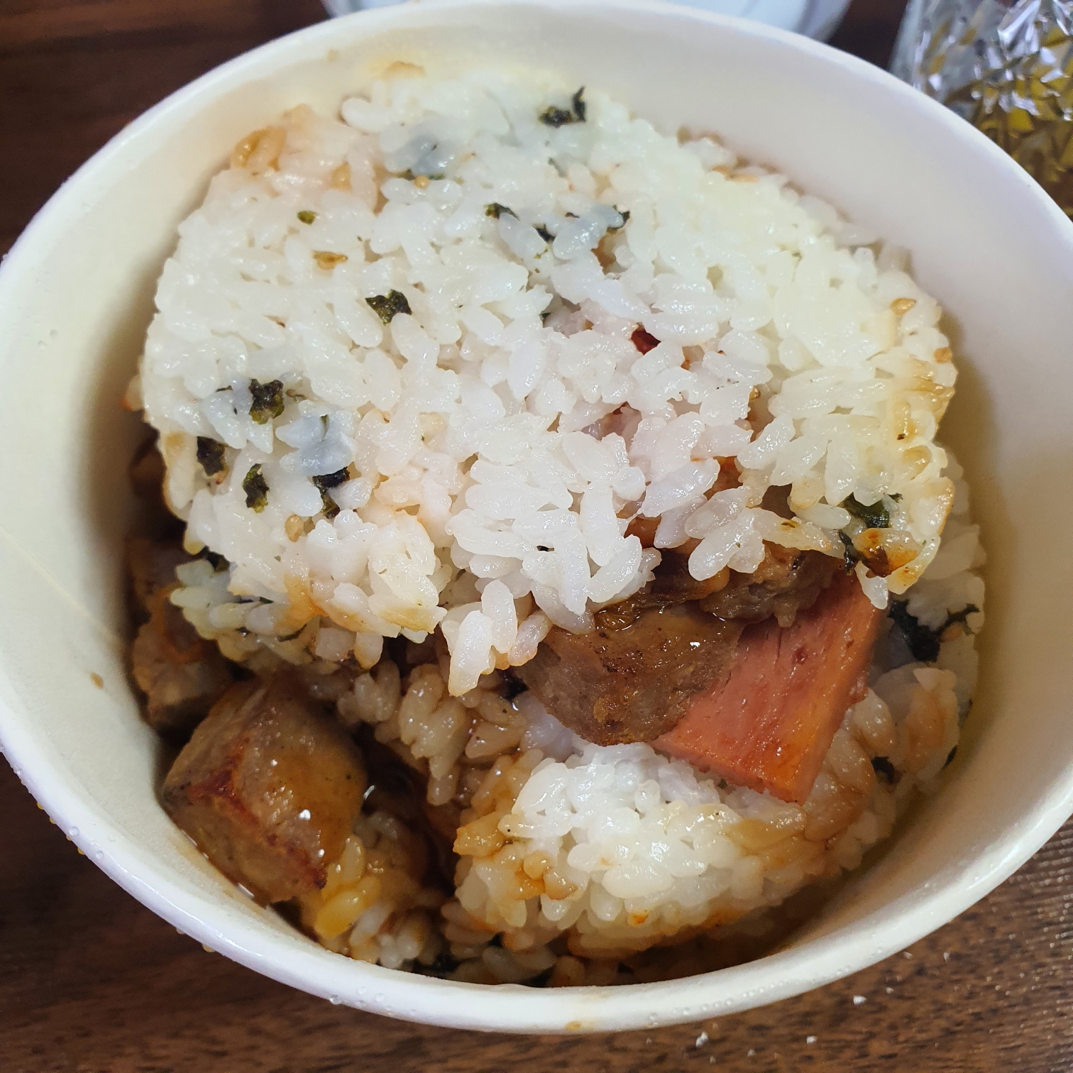 햄+단무지+참치+떡갈비+스팸+치킨+떡갈비소스+볶음김치+추가밥이 들어있어 한끼 든든합니다.