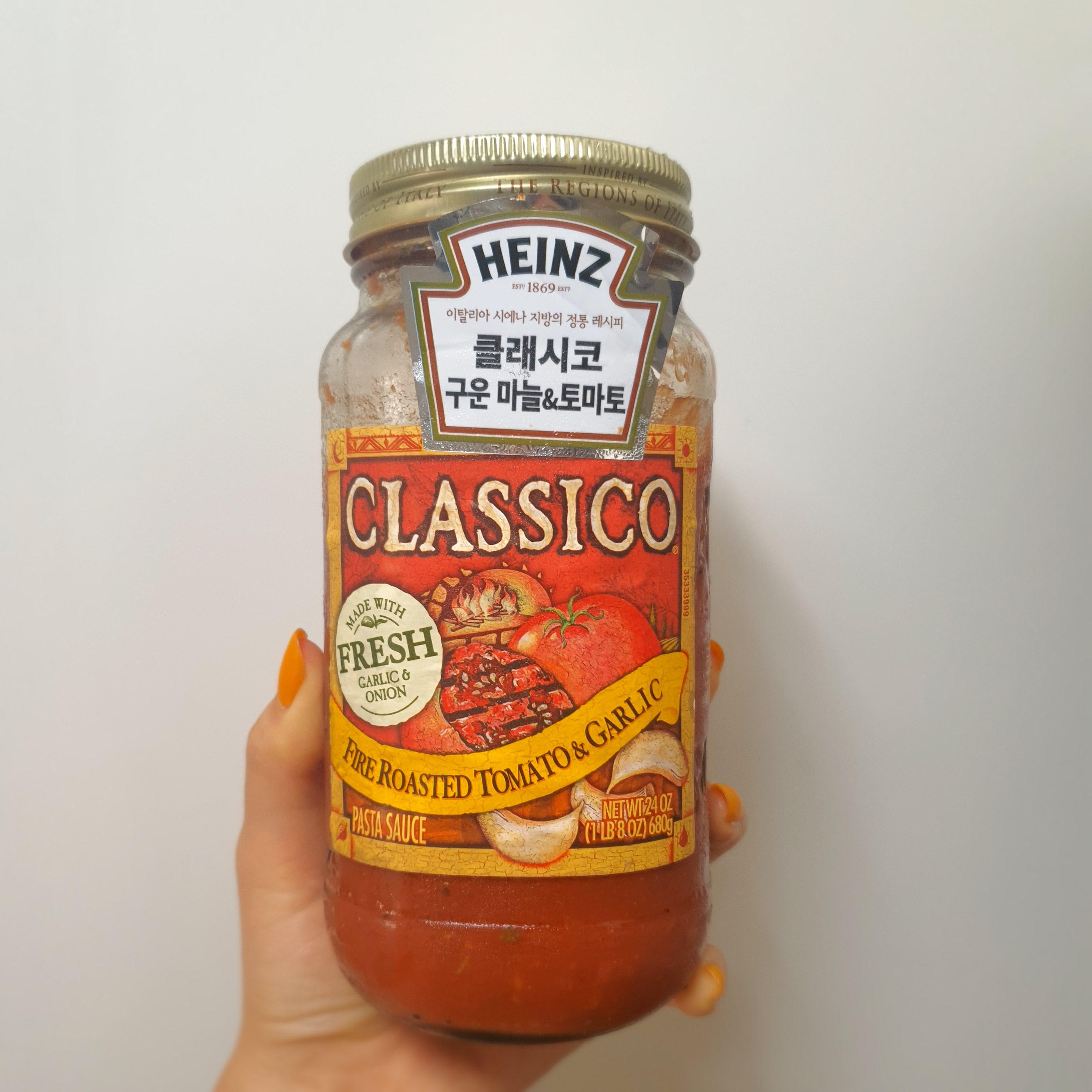 클래시코 구운마늘&토마토 소스로 만들었습니다.