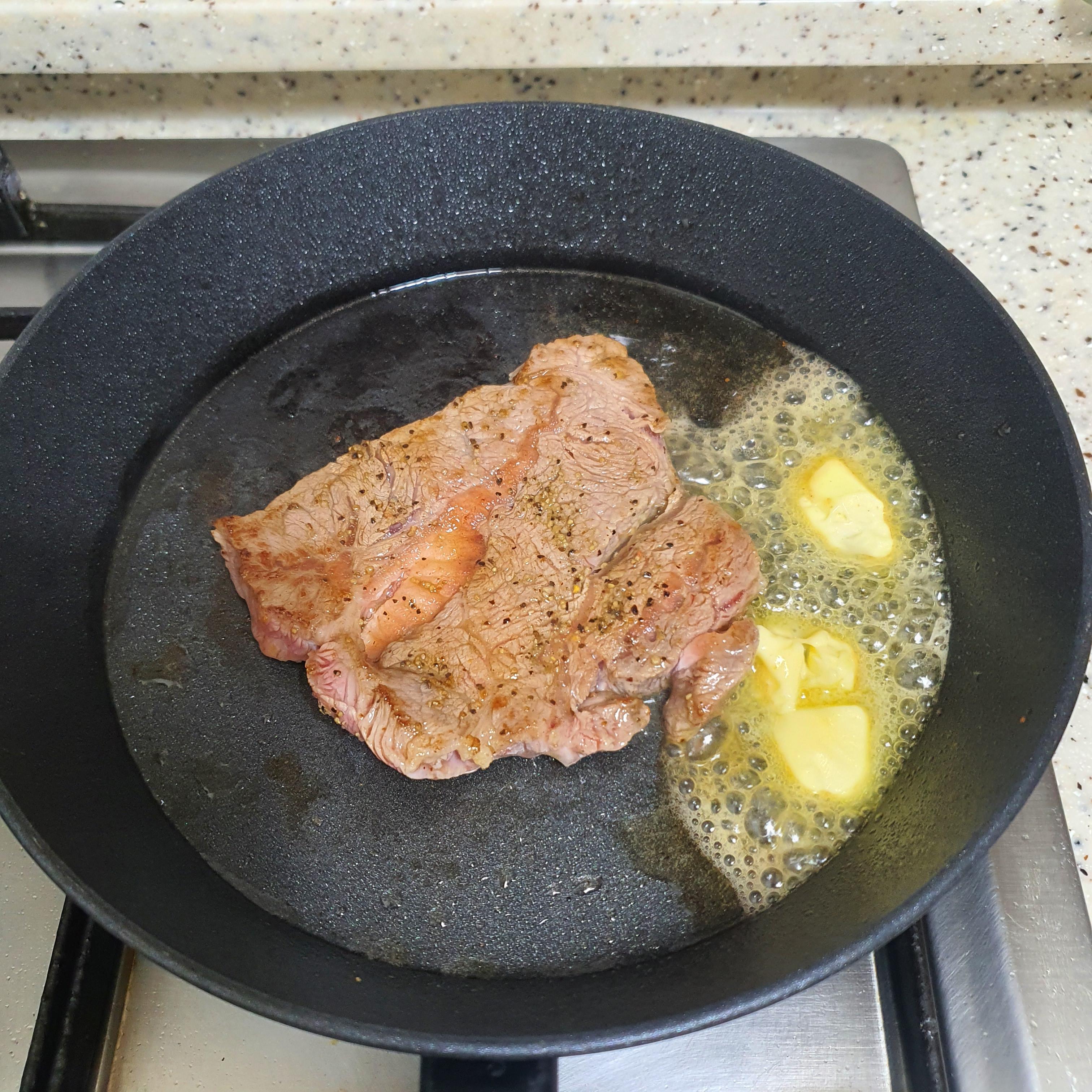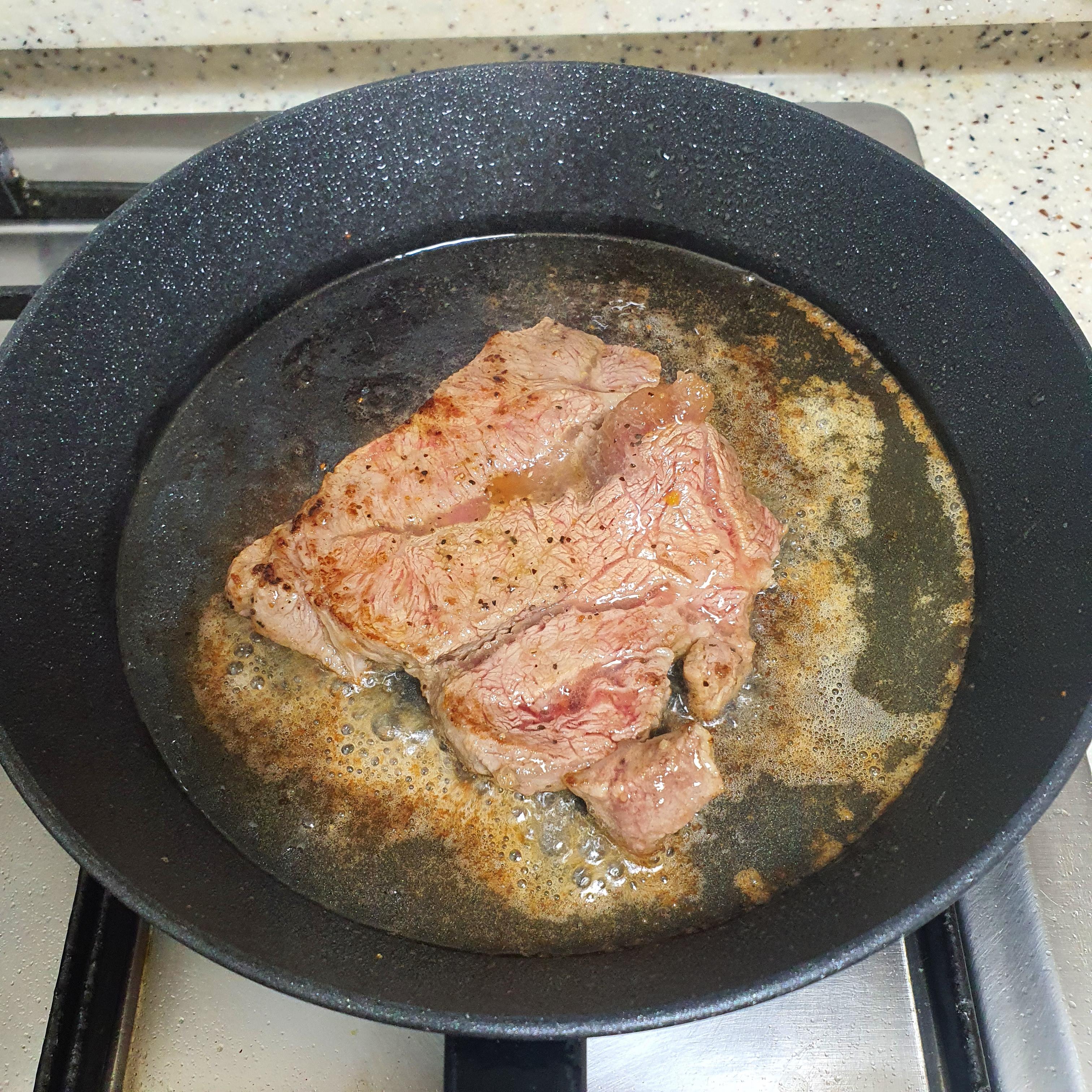 너무 핏기가 있는 걸 싫어해서 미디엄으로 알맞게 익혀주었습니다. (약 3분)