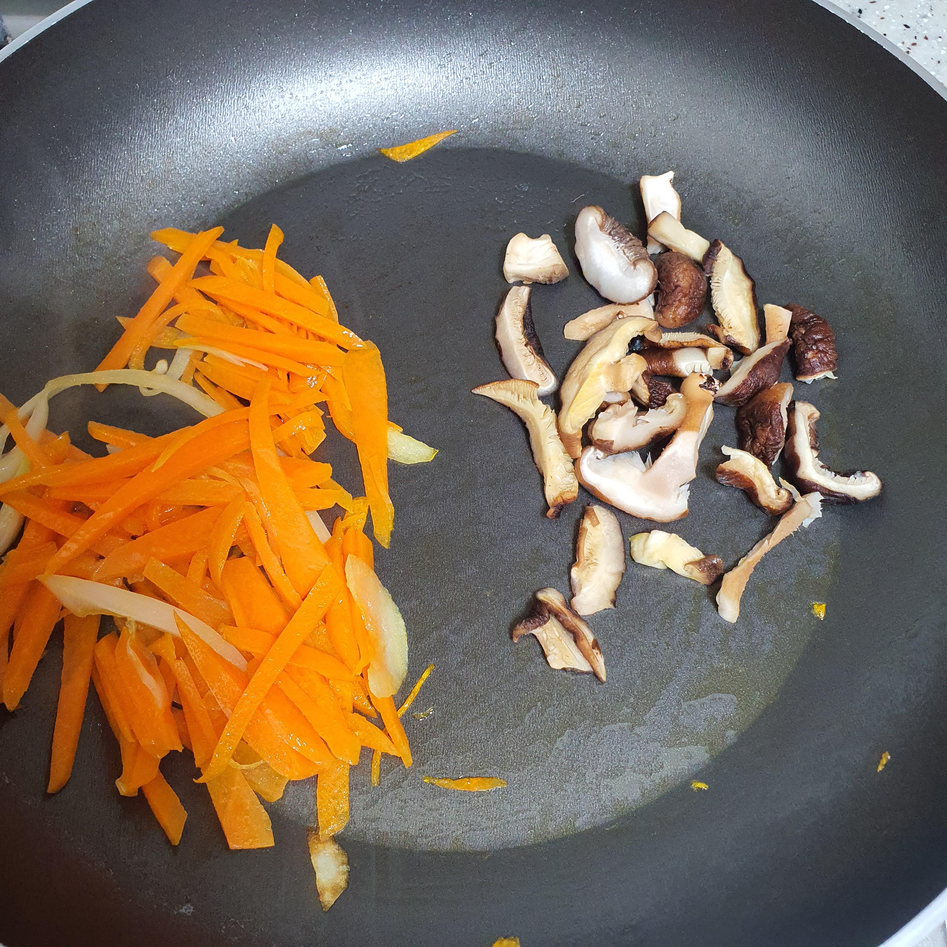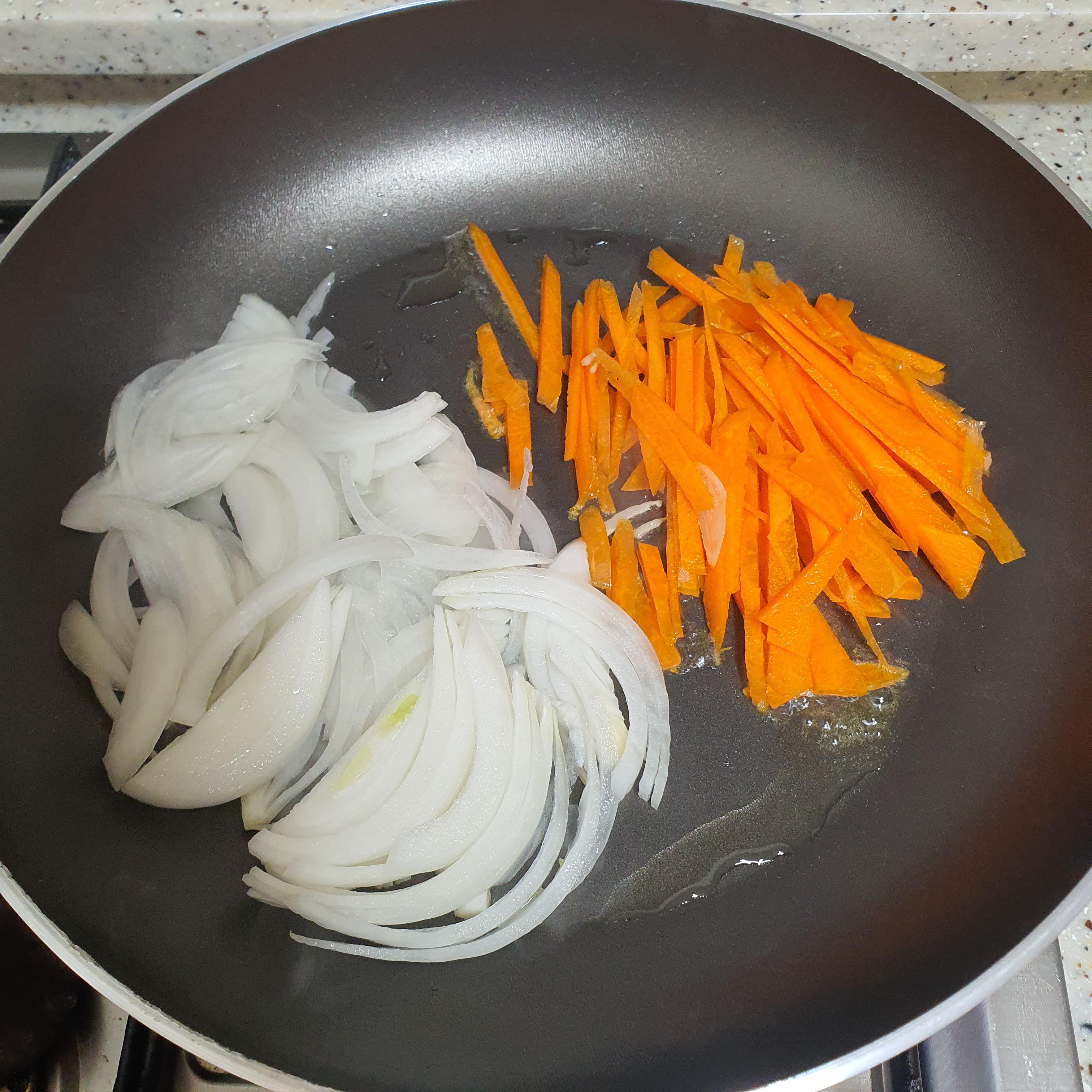 채썬 양파와 당근을 넣어준 뒤 볶아줍니다.