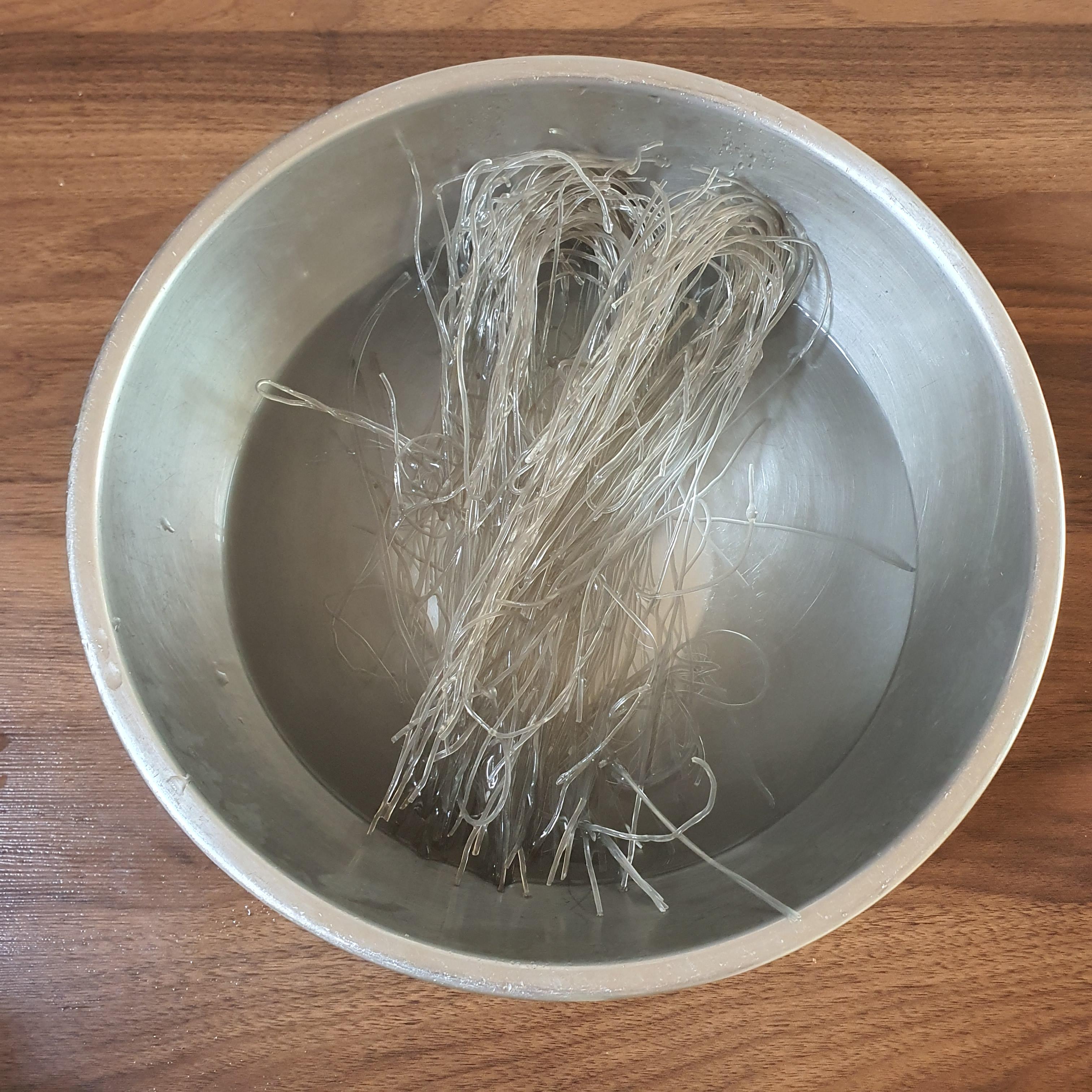제일 먼저 딱딱한 당면을 물에 불려줍니다.