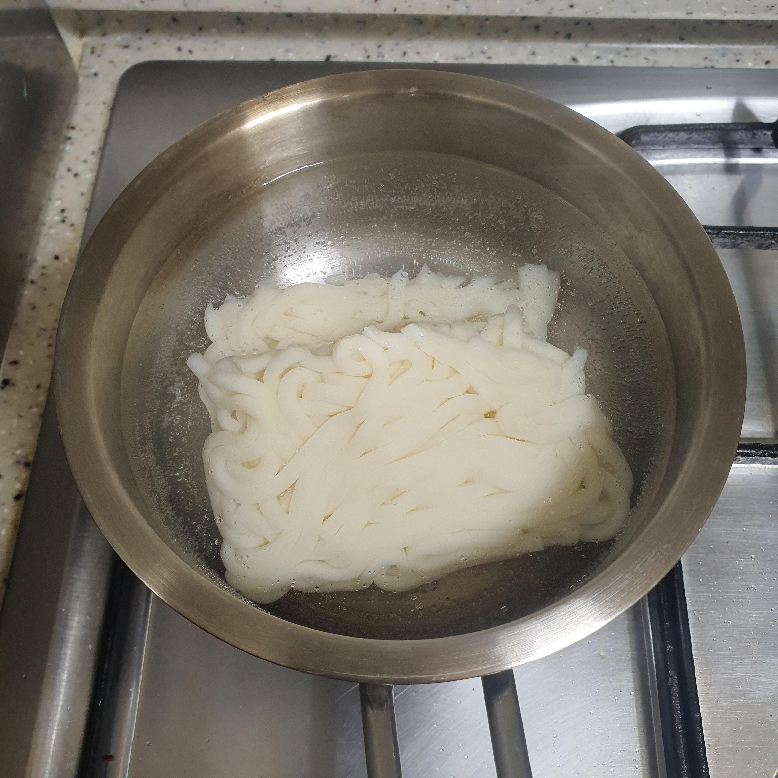그리고 팔팔 끓으면 우동 사리를 넣어줍니다.