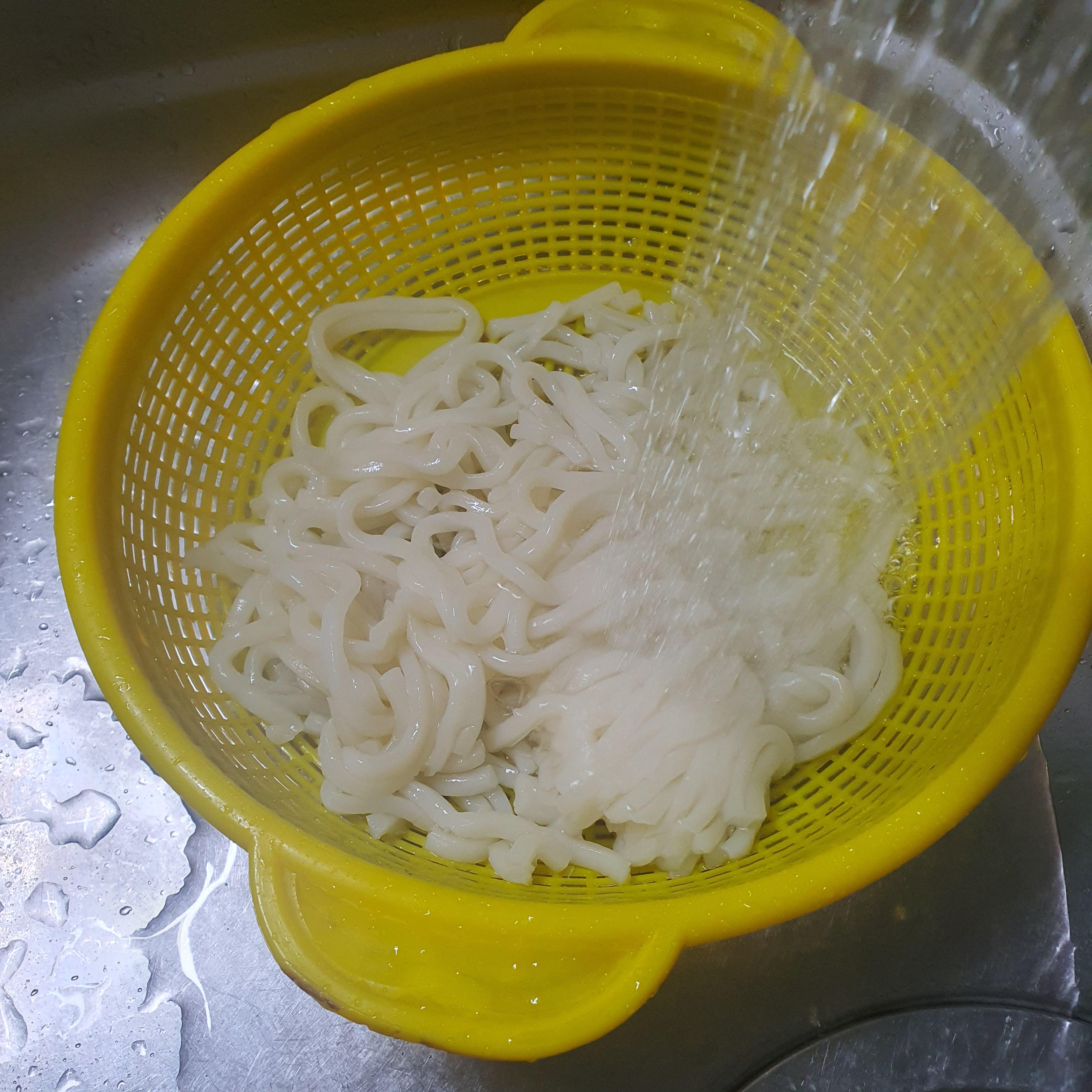 쫄깃한 식감을 위해 찬물로 헹궈줍니다.