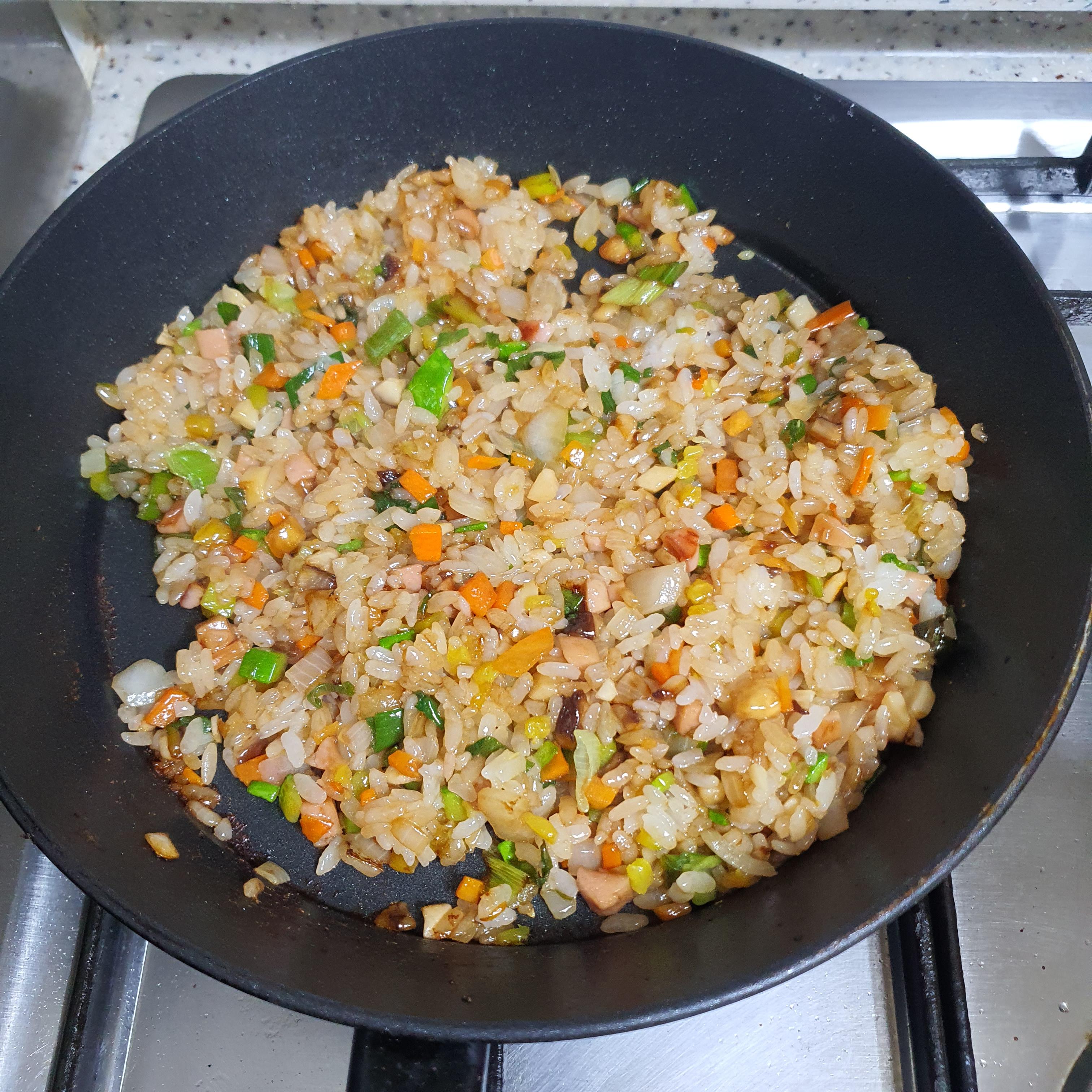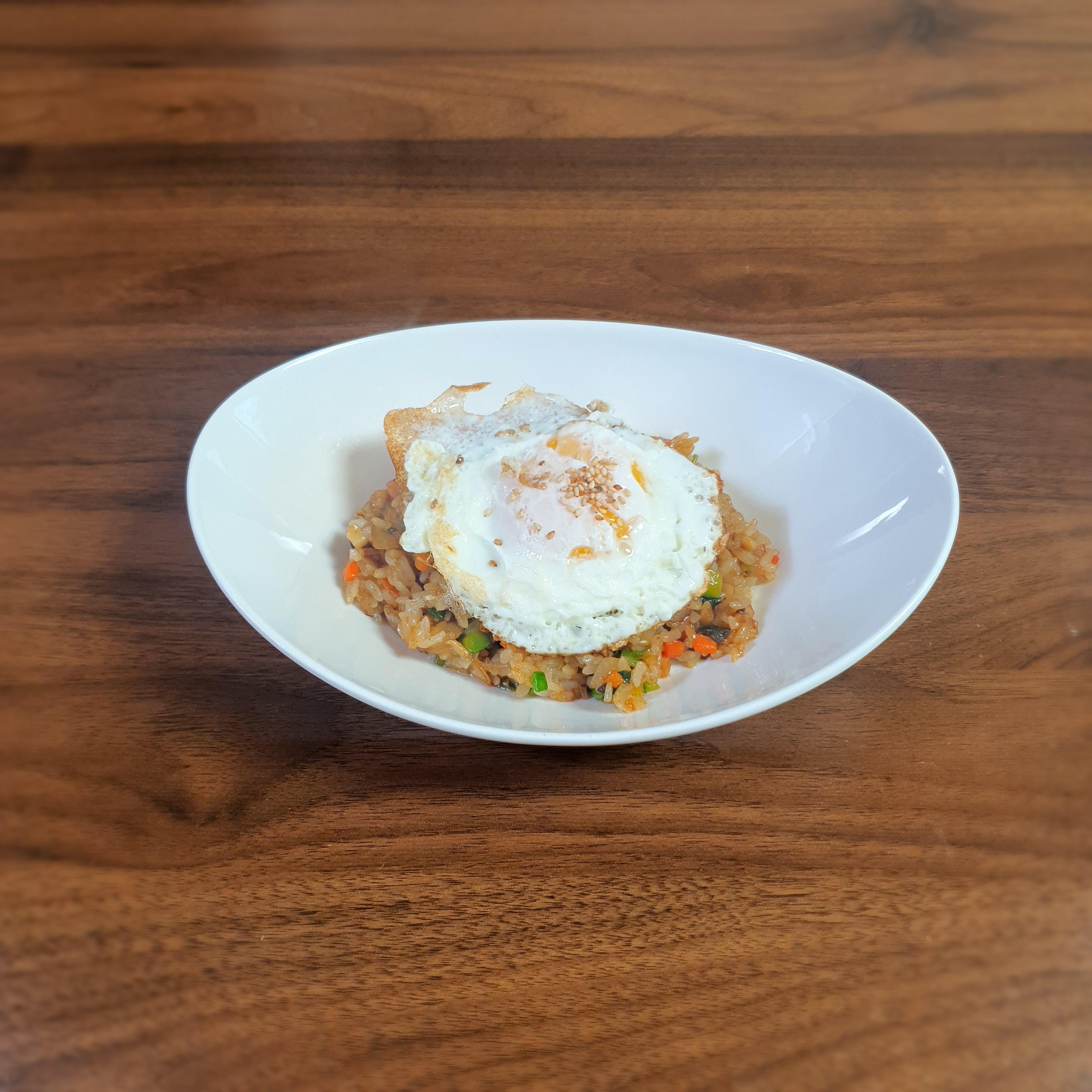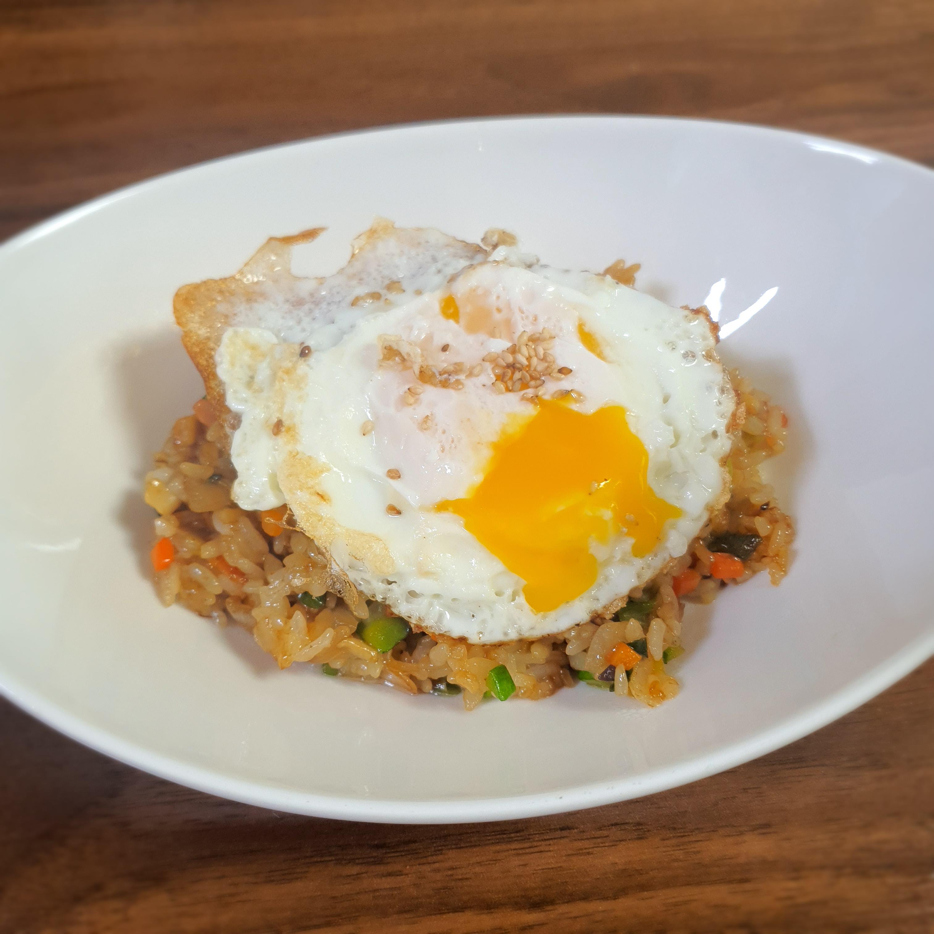 볶음밥 위에 계란프라이까지 올리면 야채볶음밥이 완성됩니다.