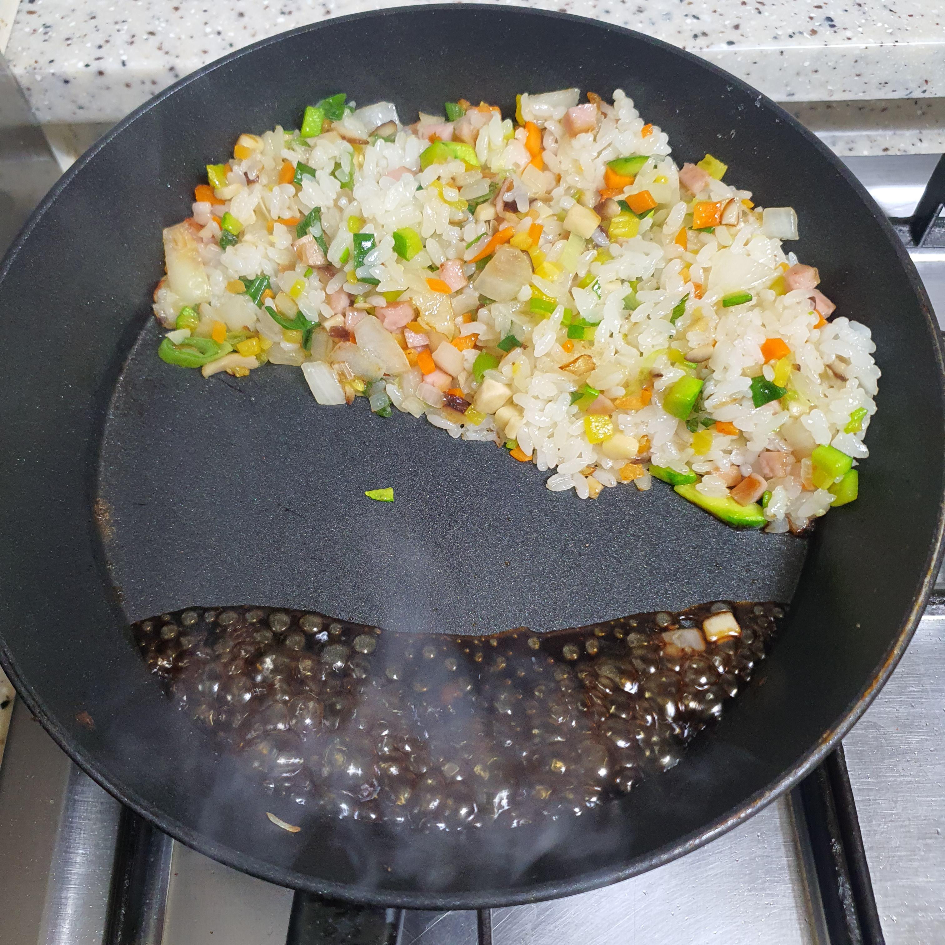 소스가 끓으면 밥과 함께 볶아줍니다.