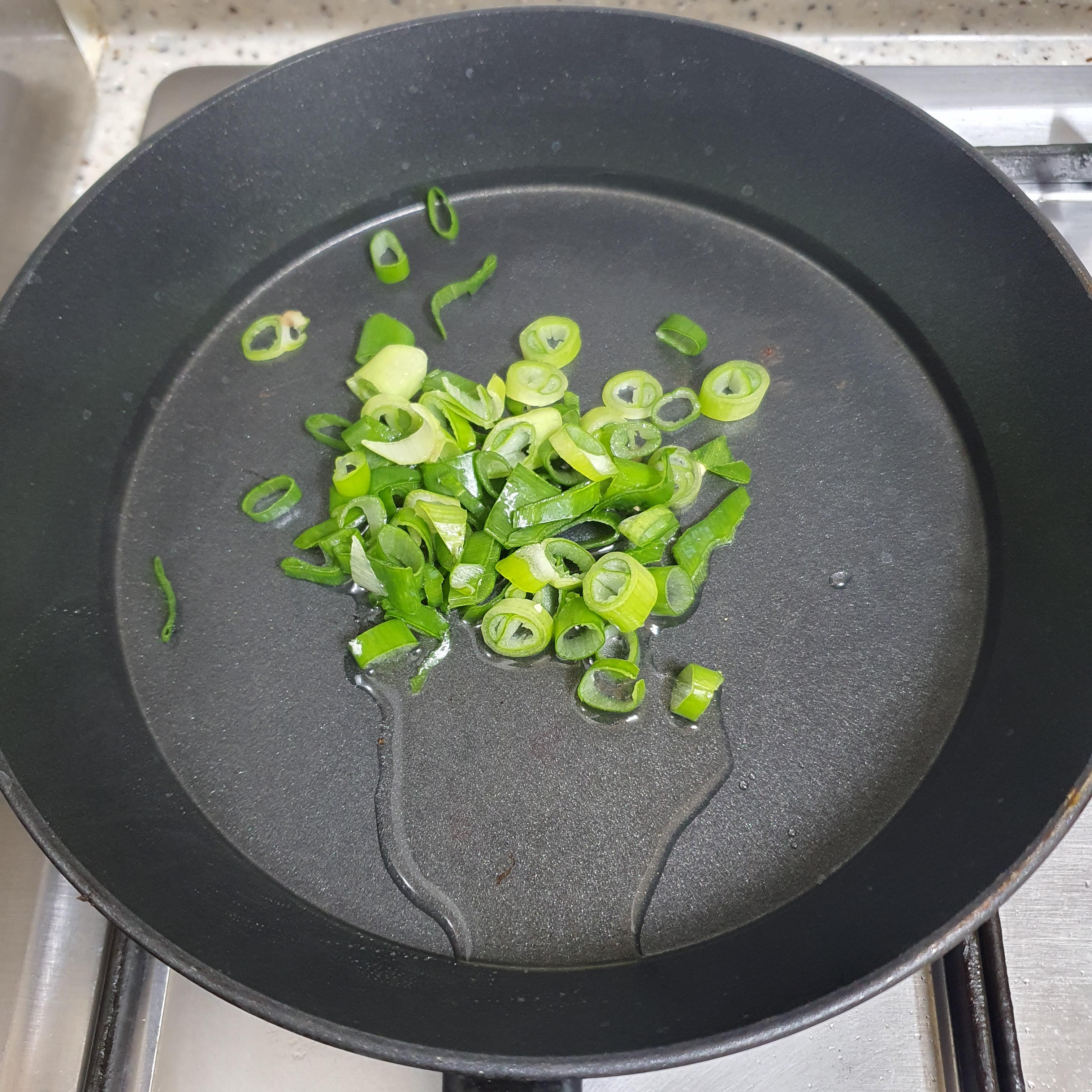 기름을 넣고 송송 썰은 파를 넣어 파기름을 내줍니다.
