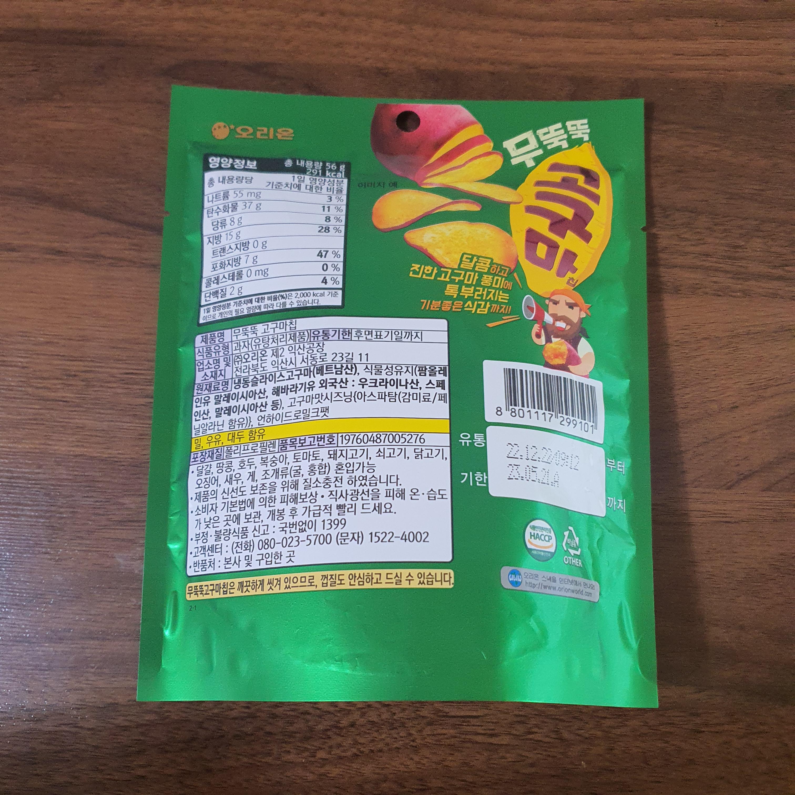 오리온 무뚝뚝 고구마칩은 생고구마로 만들었다고 합니다.
