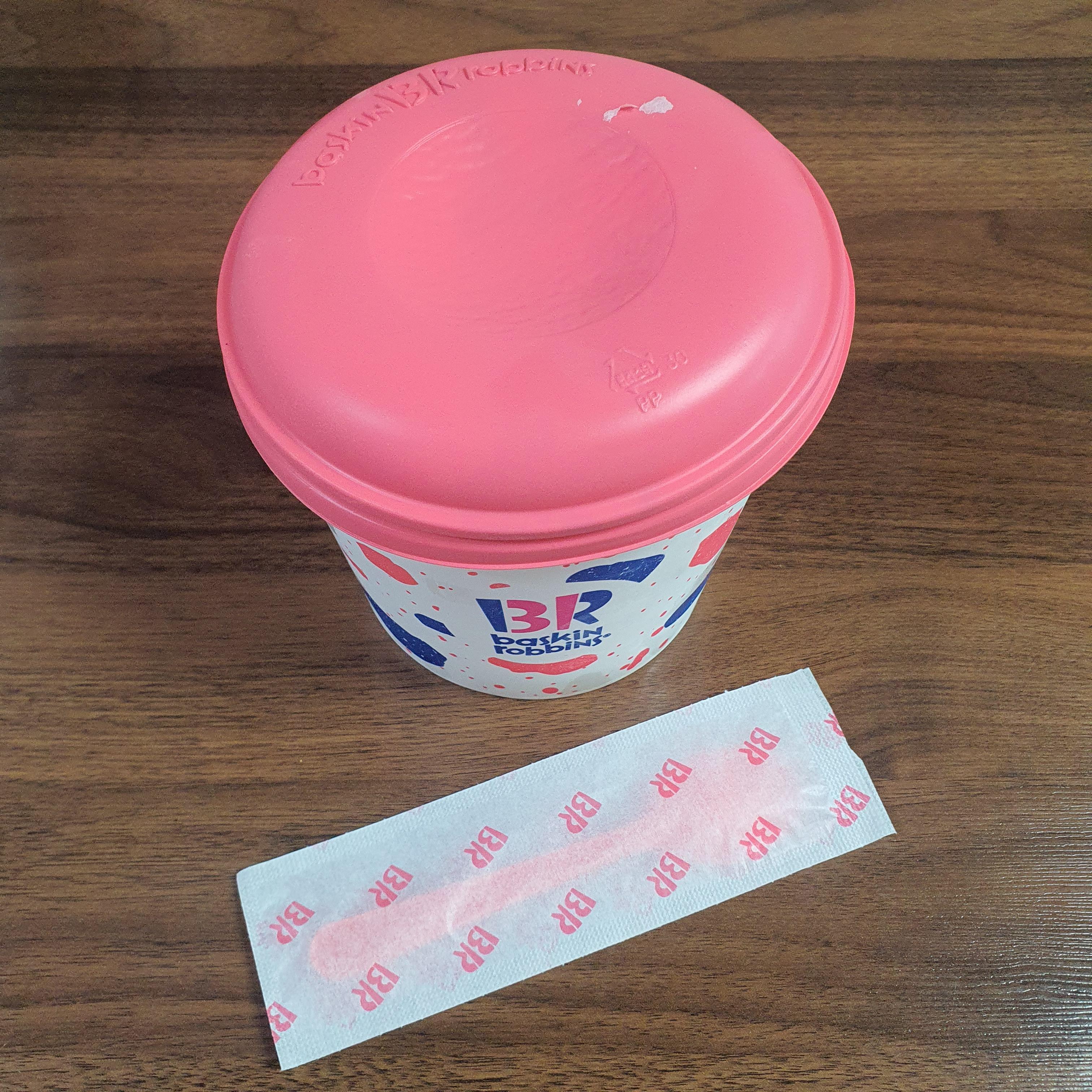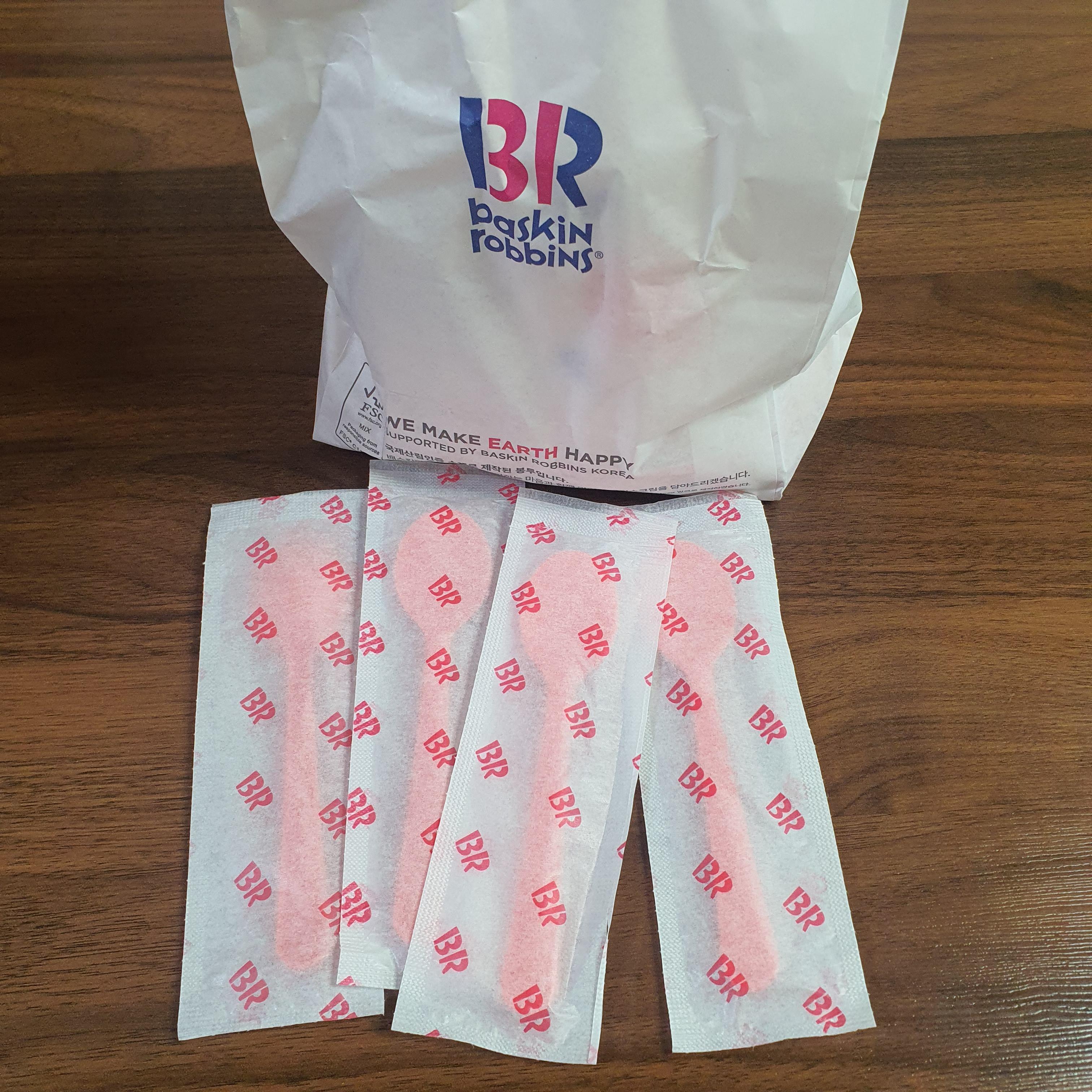 배스킨라빈스 통은 안 바꼈는데 숟가락 포장지가 바꼈더라고요!