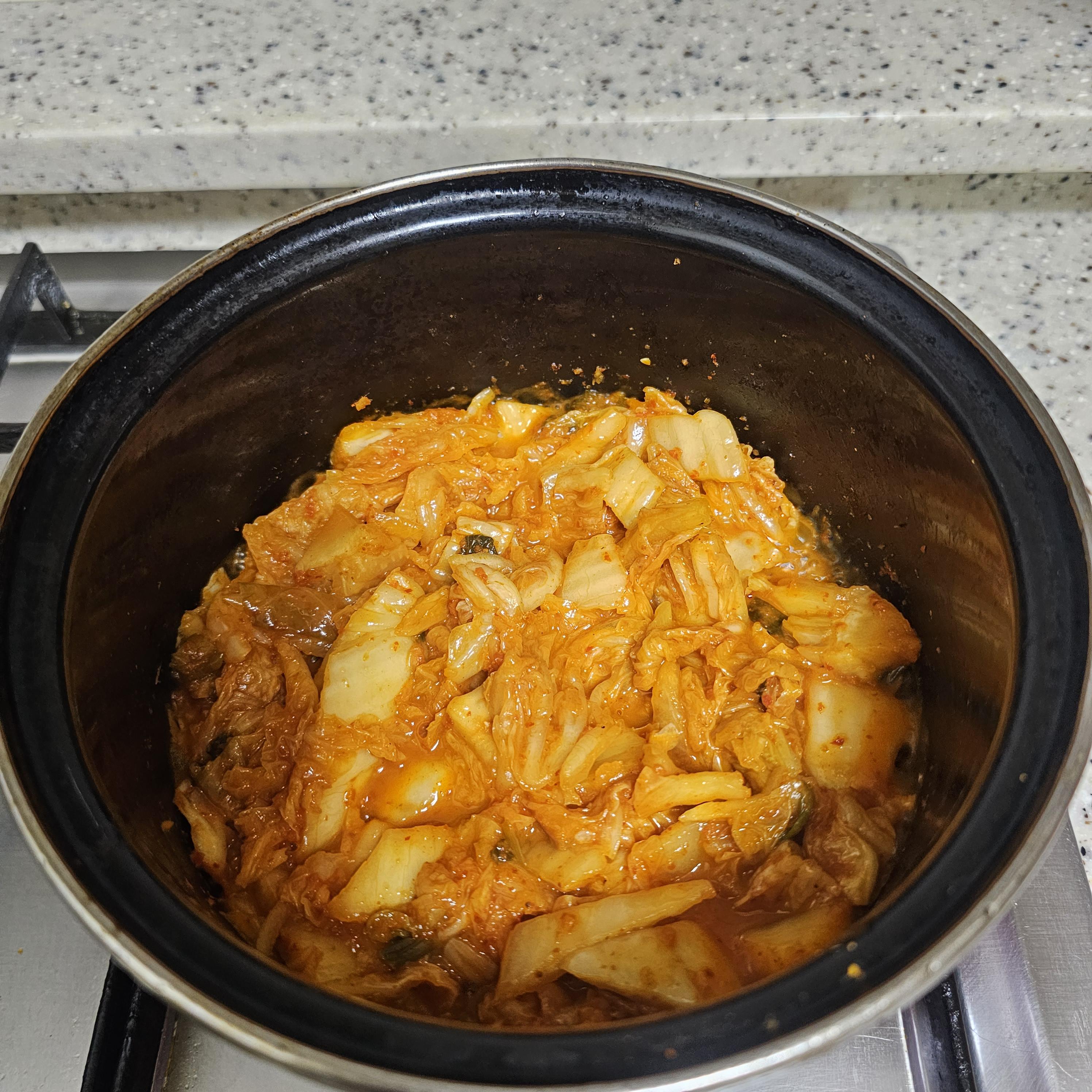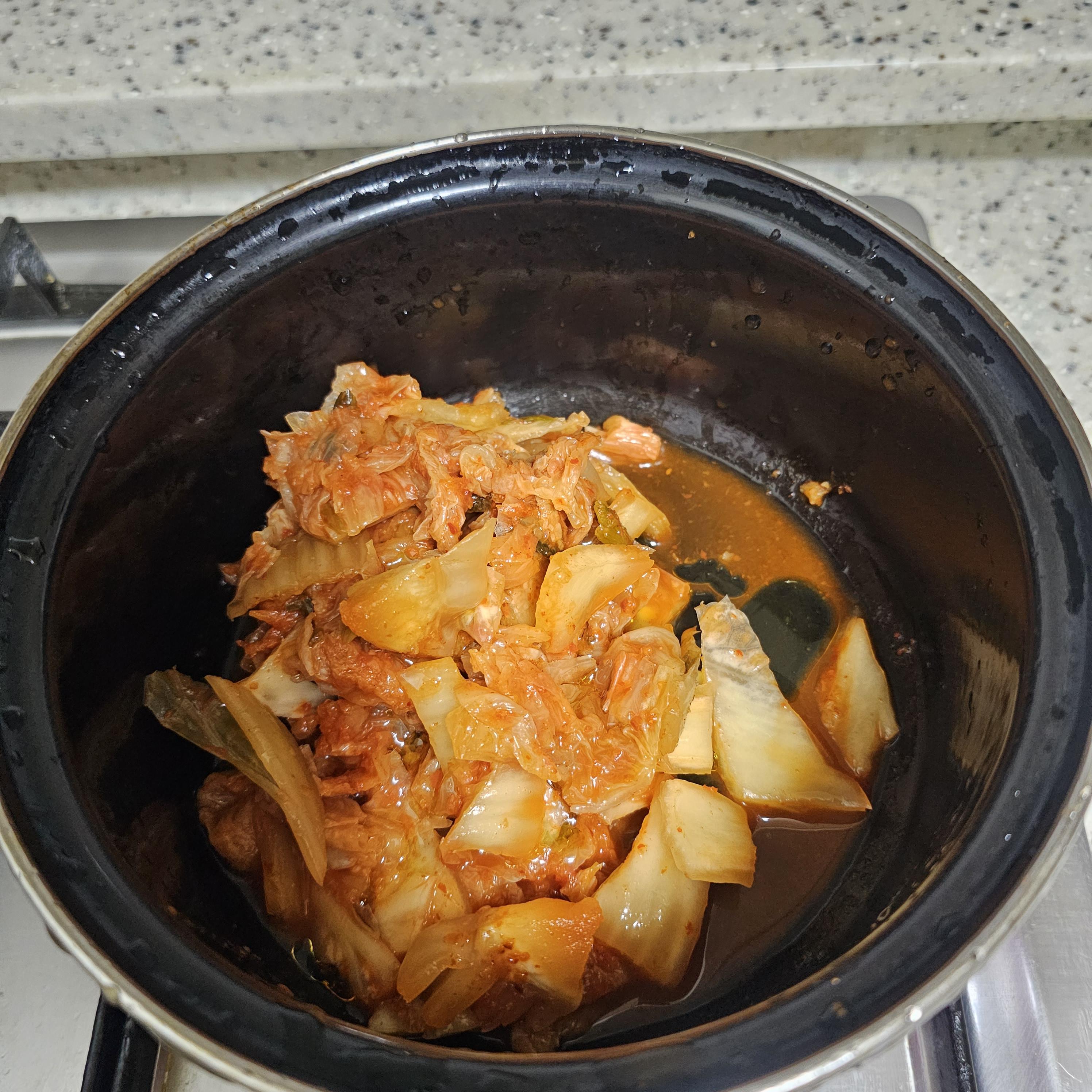 볶아주면 김치가 색이 진해지며 익은 느낌이 납니다.