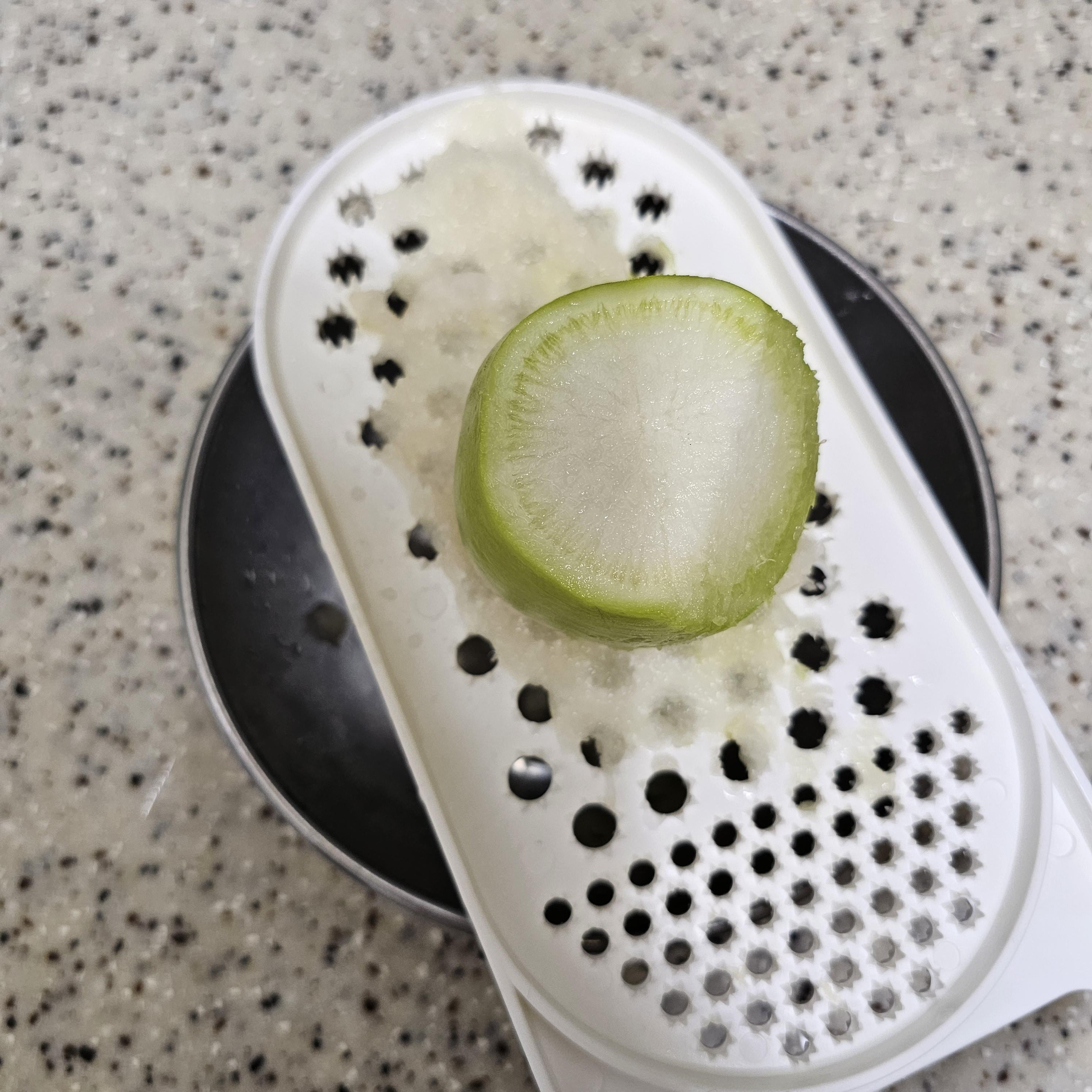 메밀소바에 무는 시원한 맛을 한층 더 내주기 때문에 강판에 조금 갈아줍니다.