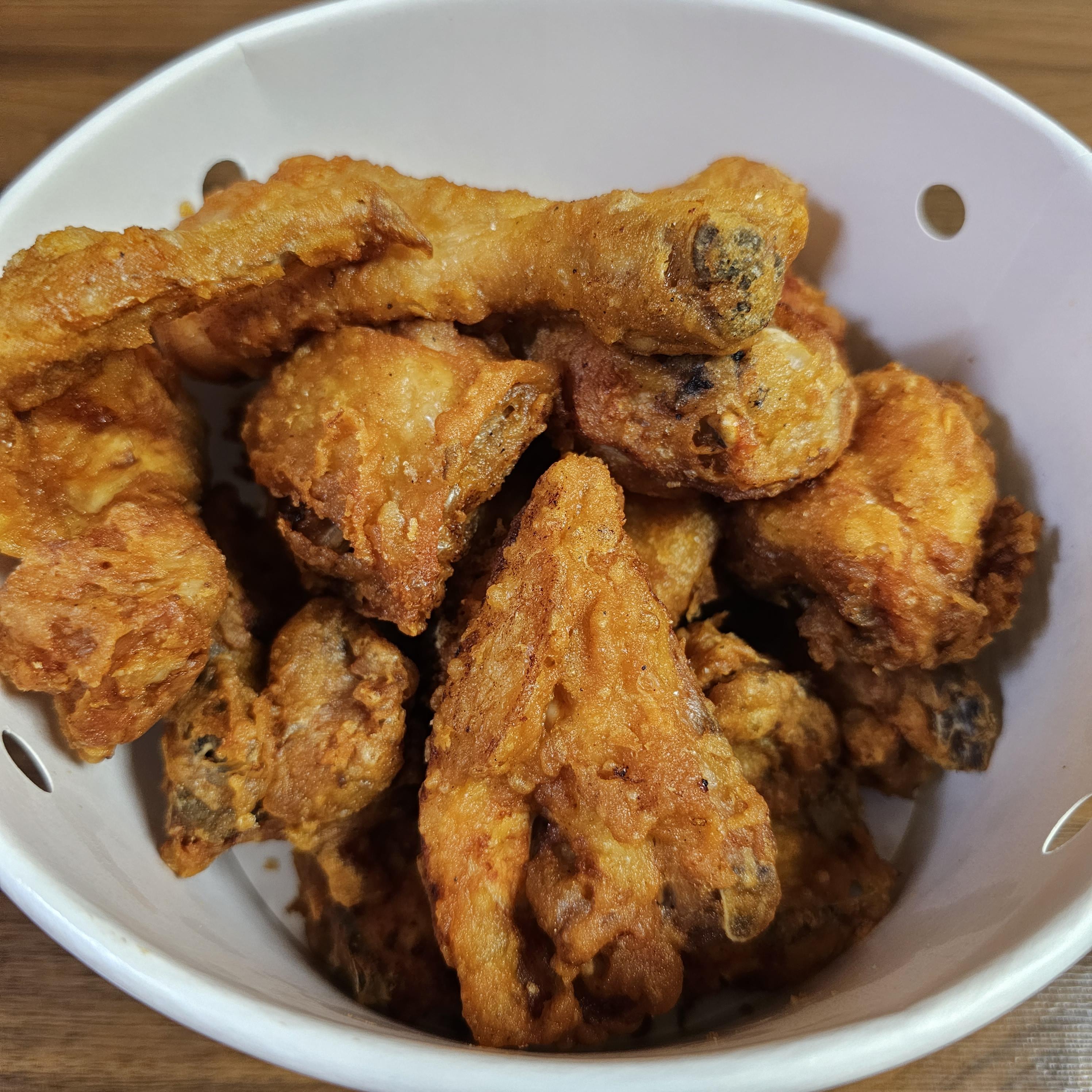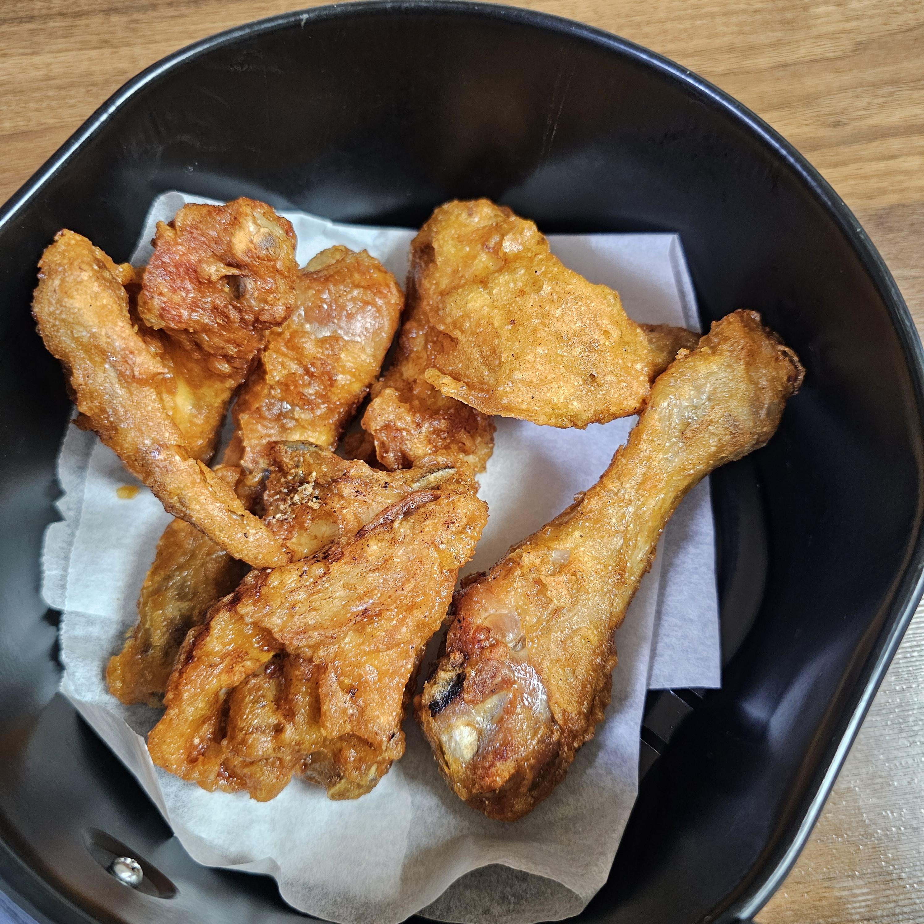 에어프라이어에 데워먹으니 치킨 껍질이 얇아서 그런가? 치킨이 엄청 바삭해지더라고요!