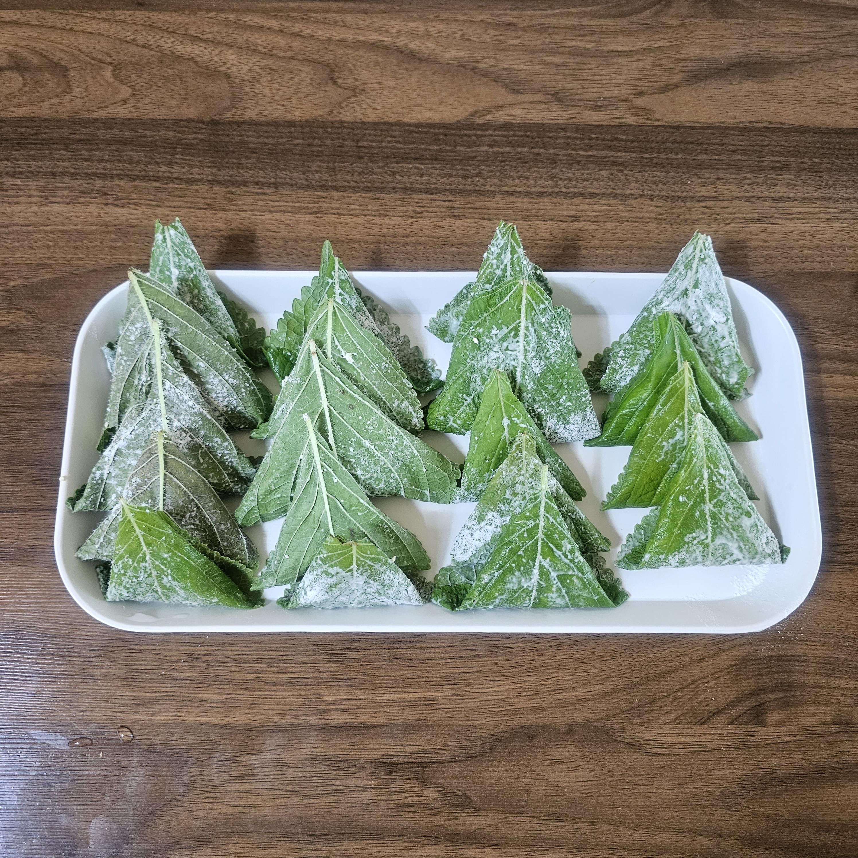 이렇게 맛있는 세모 깻잎 전이 완성되었습니다.