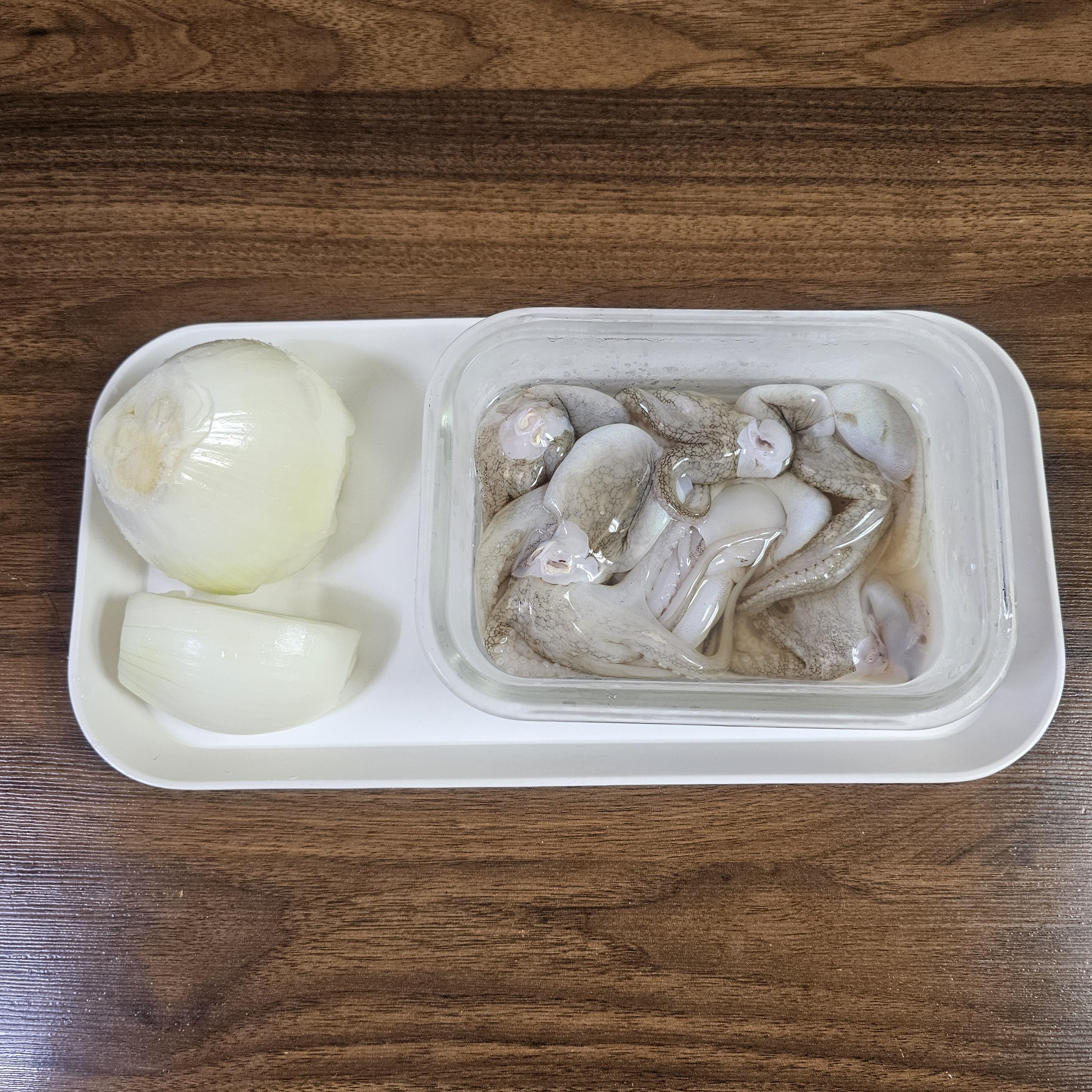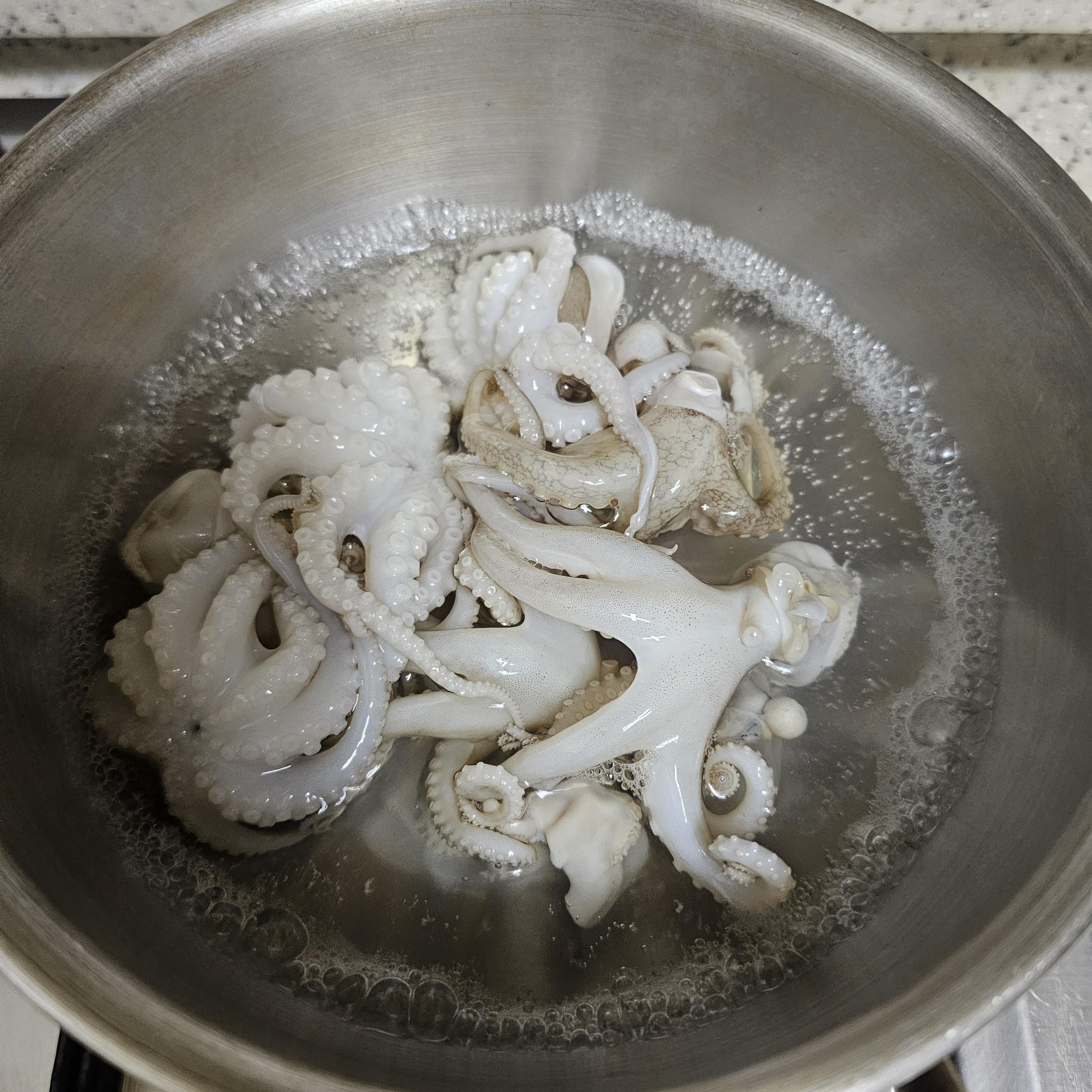 먼저 끓는 물에 깨끗하게 세척한 주꾸미를 넣고 삶아줍니다.