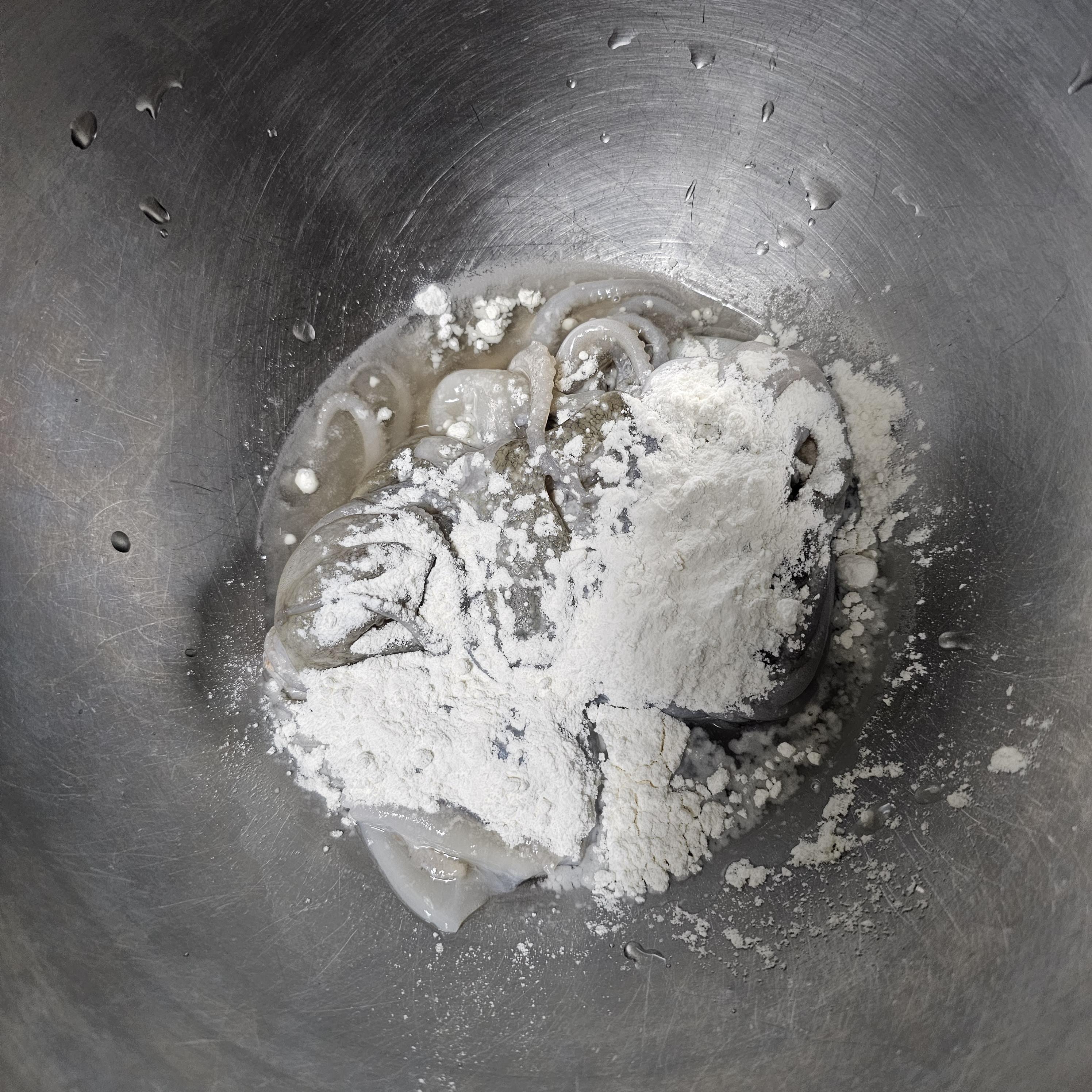 먼저 주꾸미는 세척 1회 해 주시고 밀가루를 넣어 조물조물 주물러줍니다.