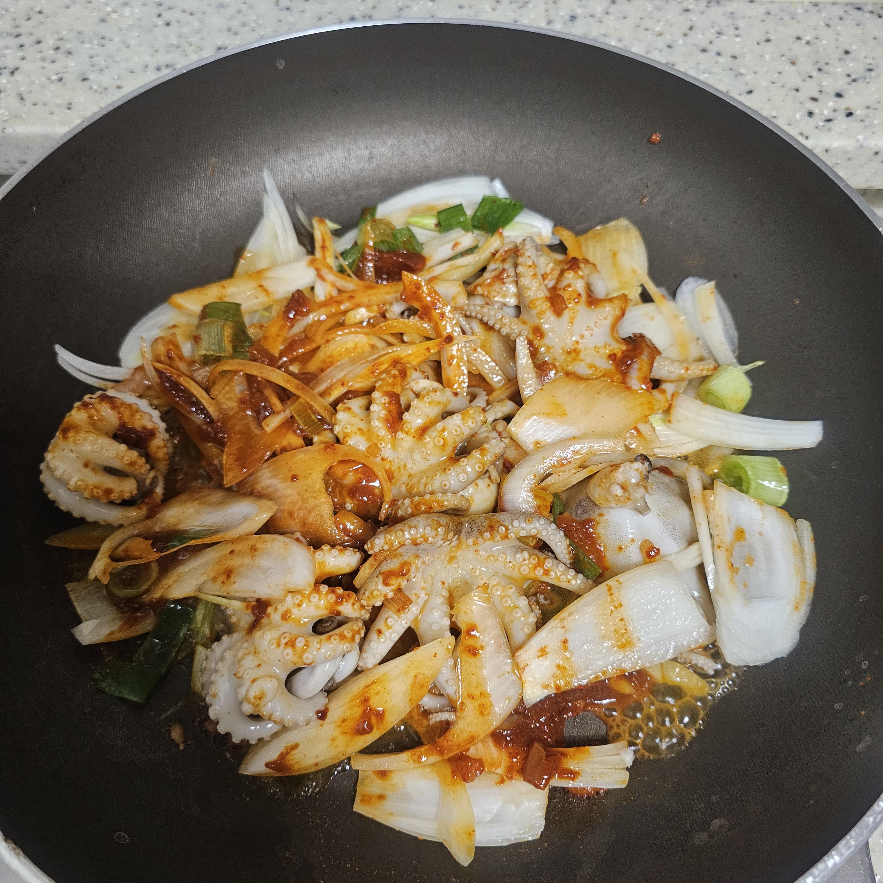 이렇게 맛있는 주꾸미 볶음이 완성되었습니다.