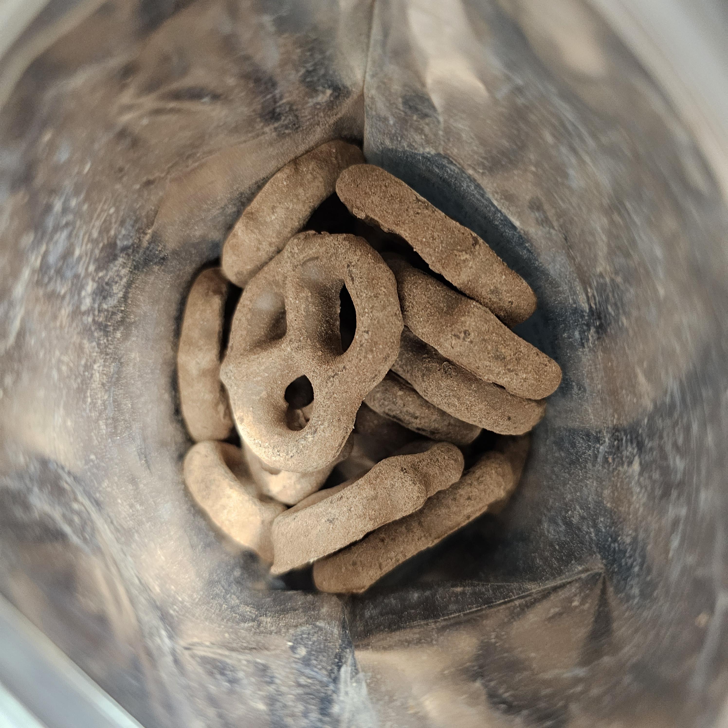 원래 기존프레첼보다는 조금 큰 크기이며 겉에 초코와 초코가루가 덮여있습니다.