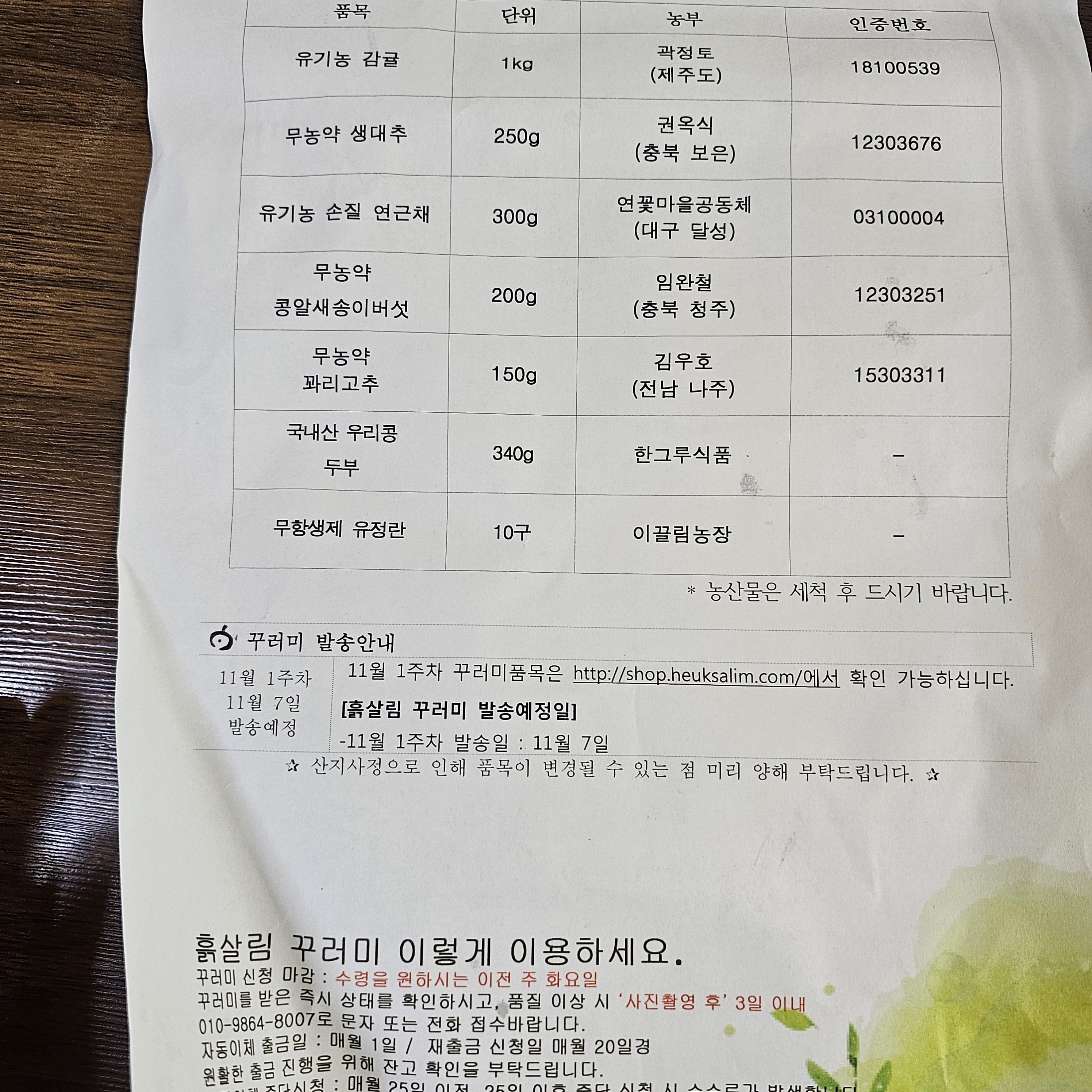 10월 흙살림 / 친환경 농산물 꾸러미 세트