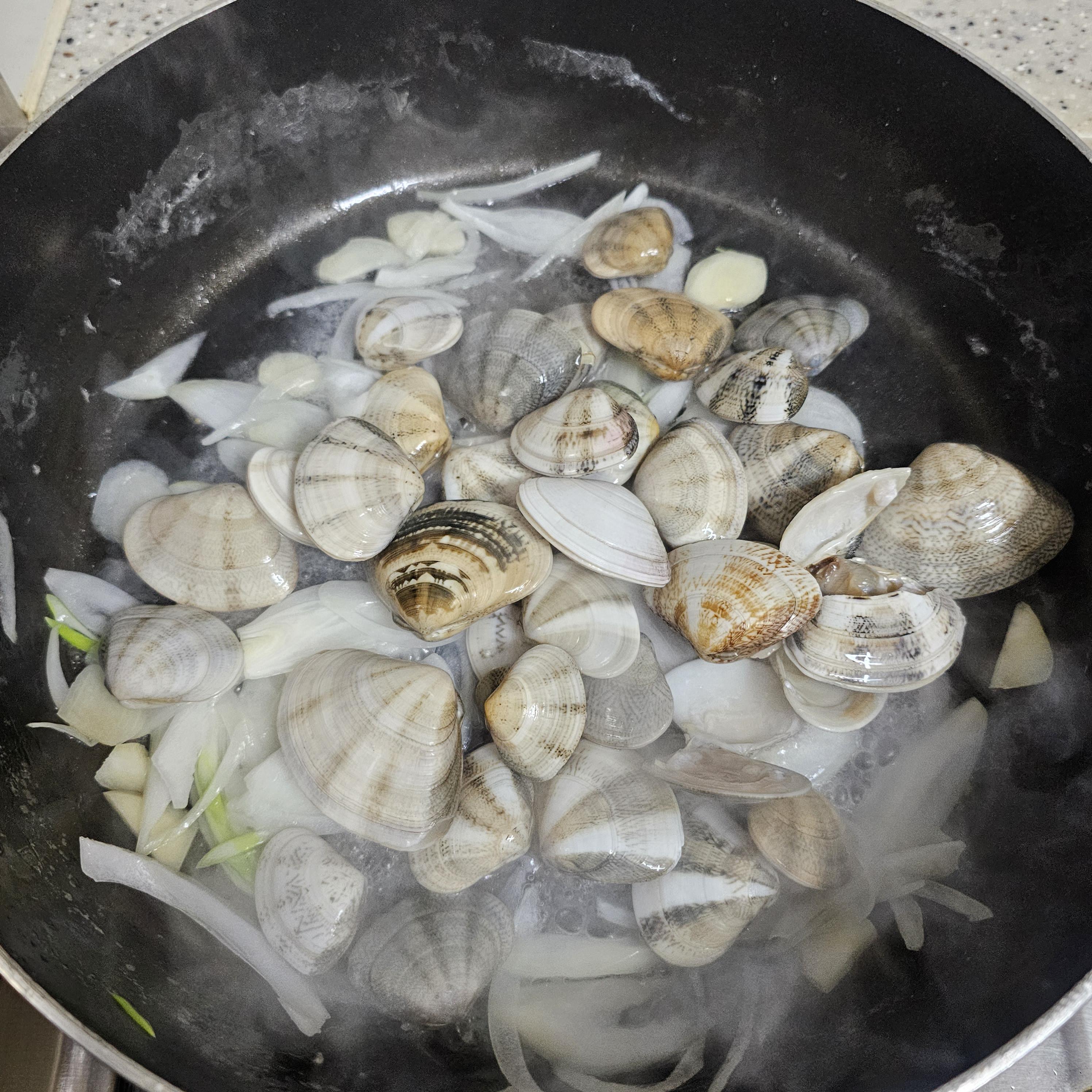 냄새를 잡기 위해 화이트 와인이나 맛술을 넣어줍니다.