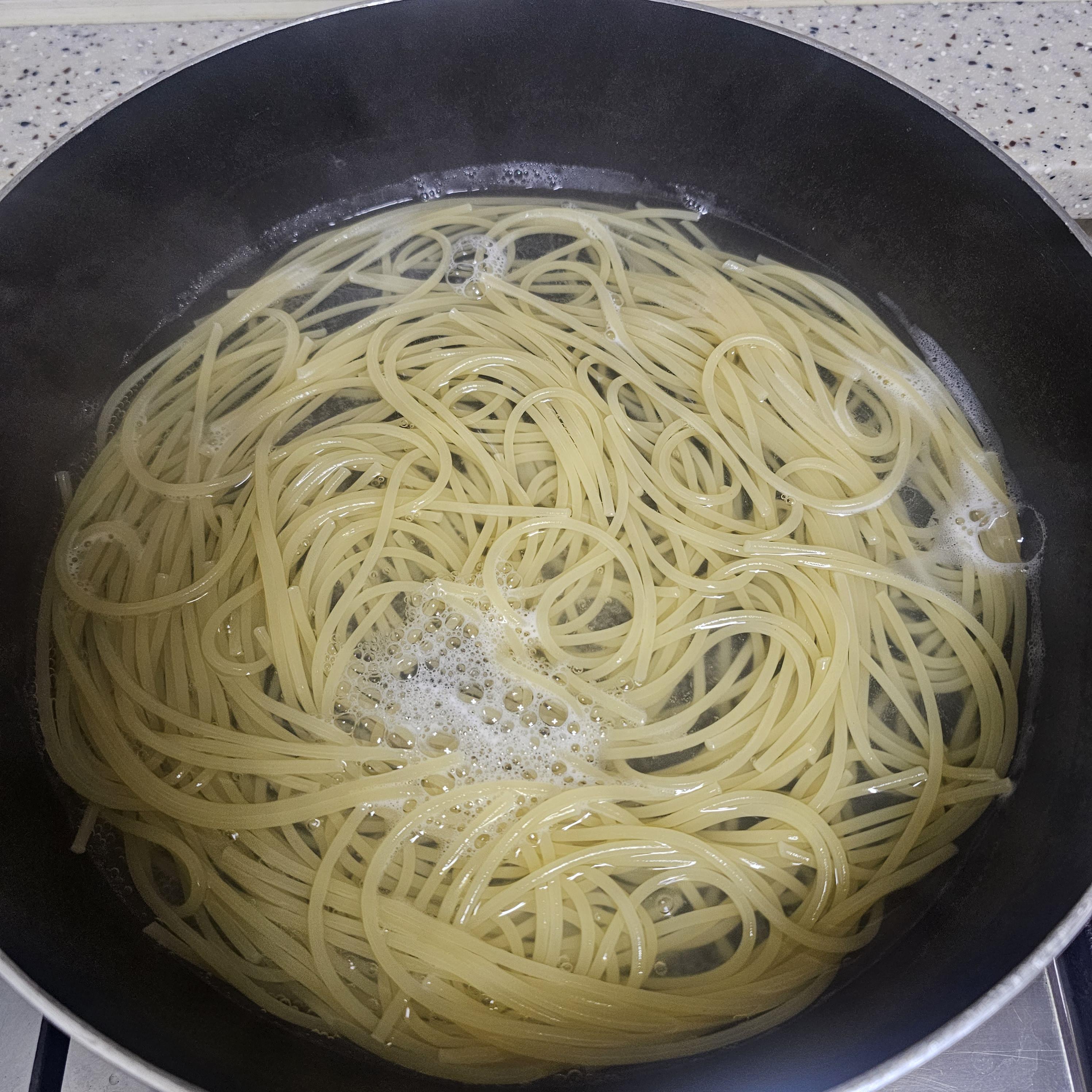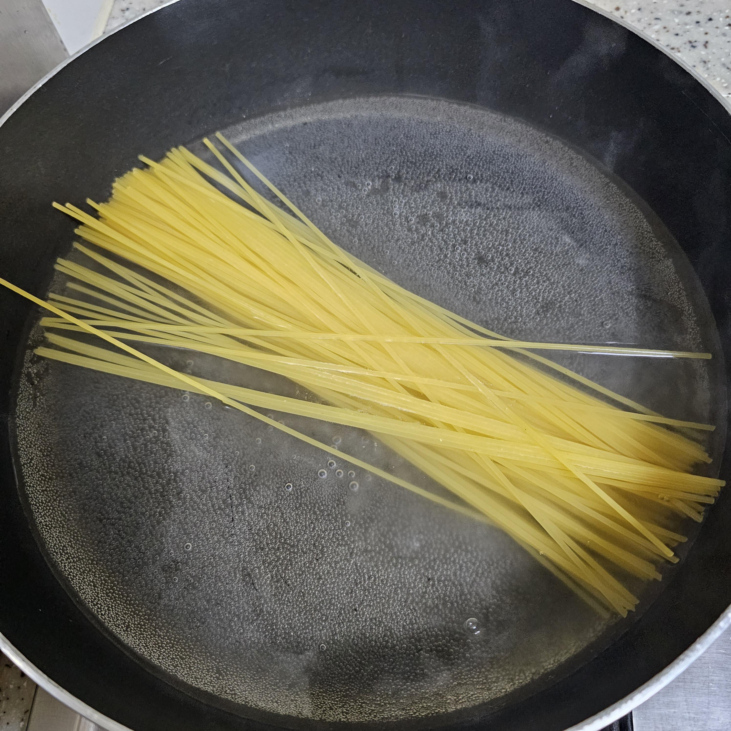 스파게티 면은 약 10분 정도 중불에서 삶아주시면 됩니다.