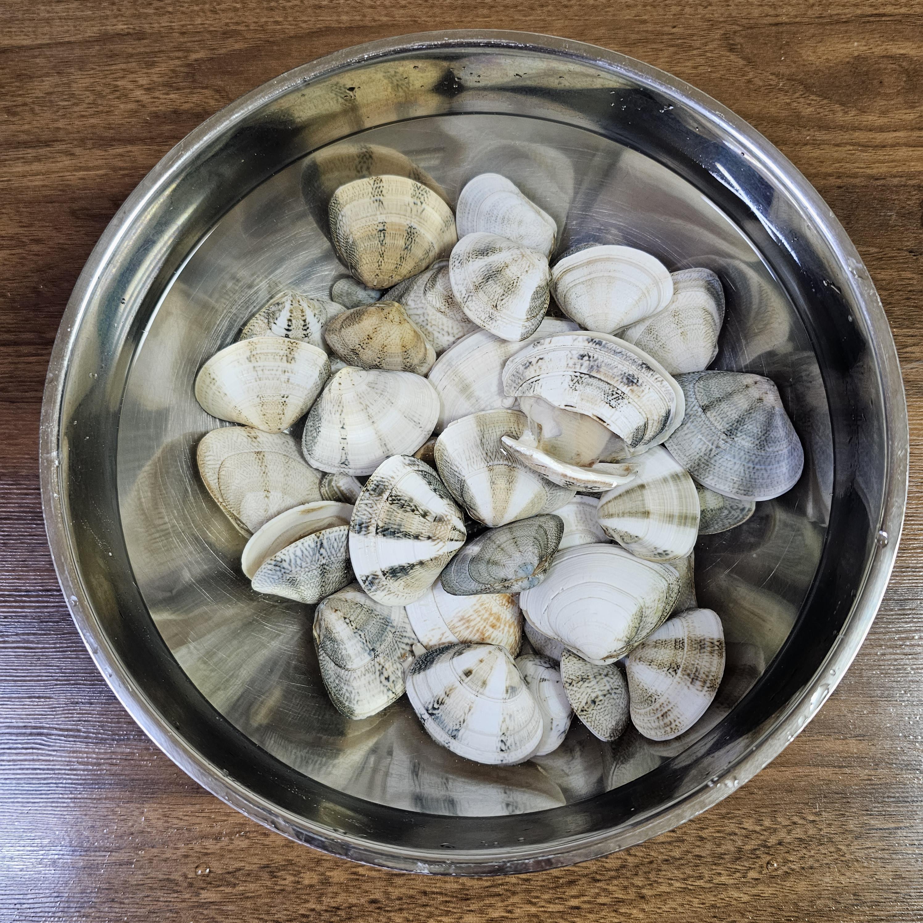 비단조개는 바지락보다 납작하고 세로줄이 있습니다!