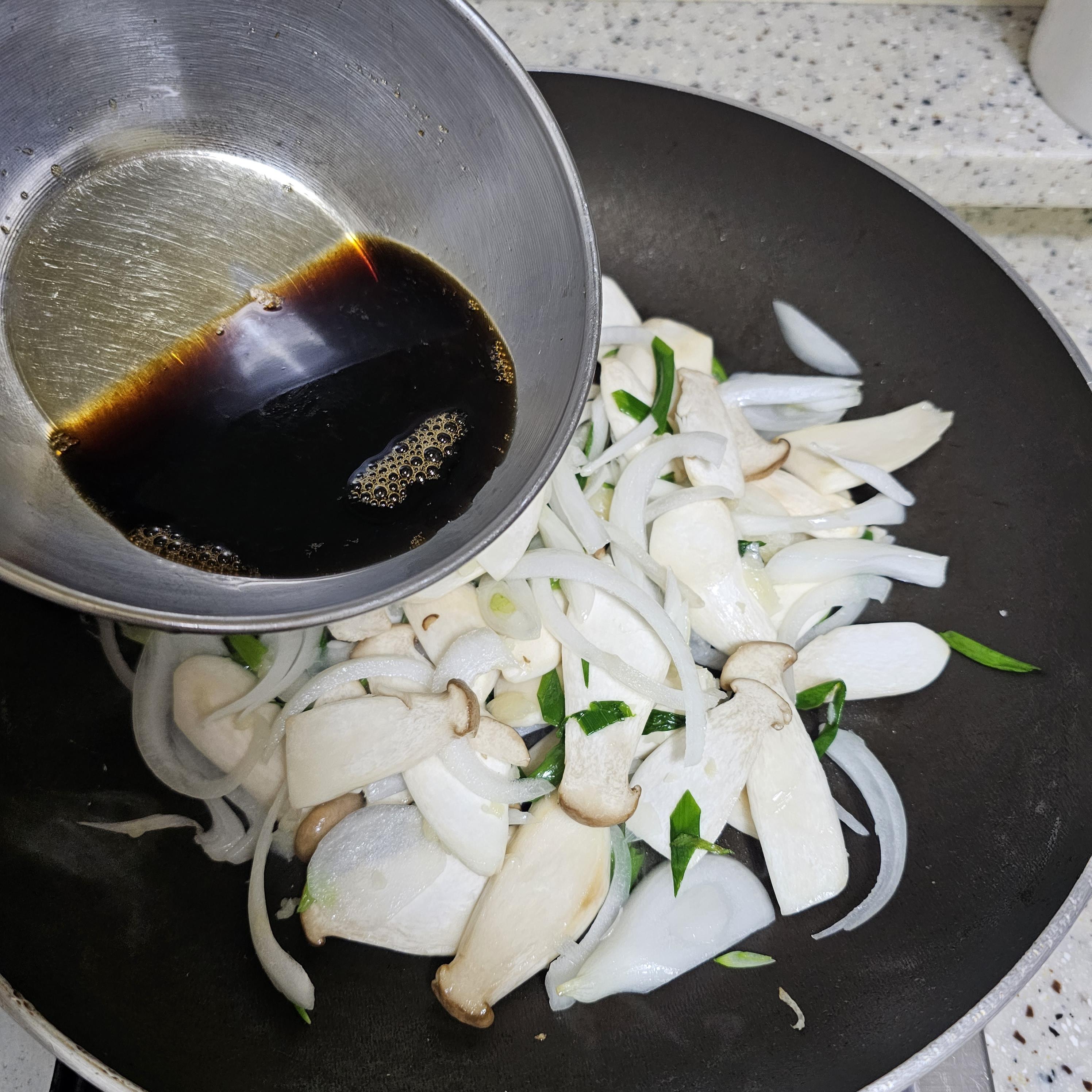 콩알새송이버섯, 양파, 쪽파, 다진 마늘, 간장, 올리고당, 설탕, 깨