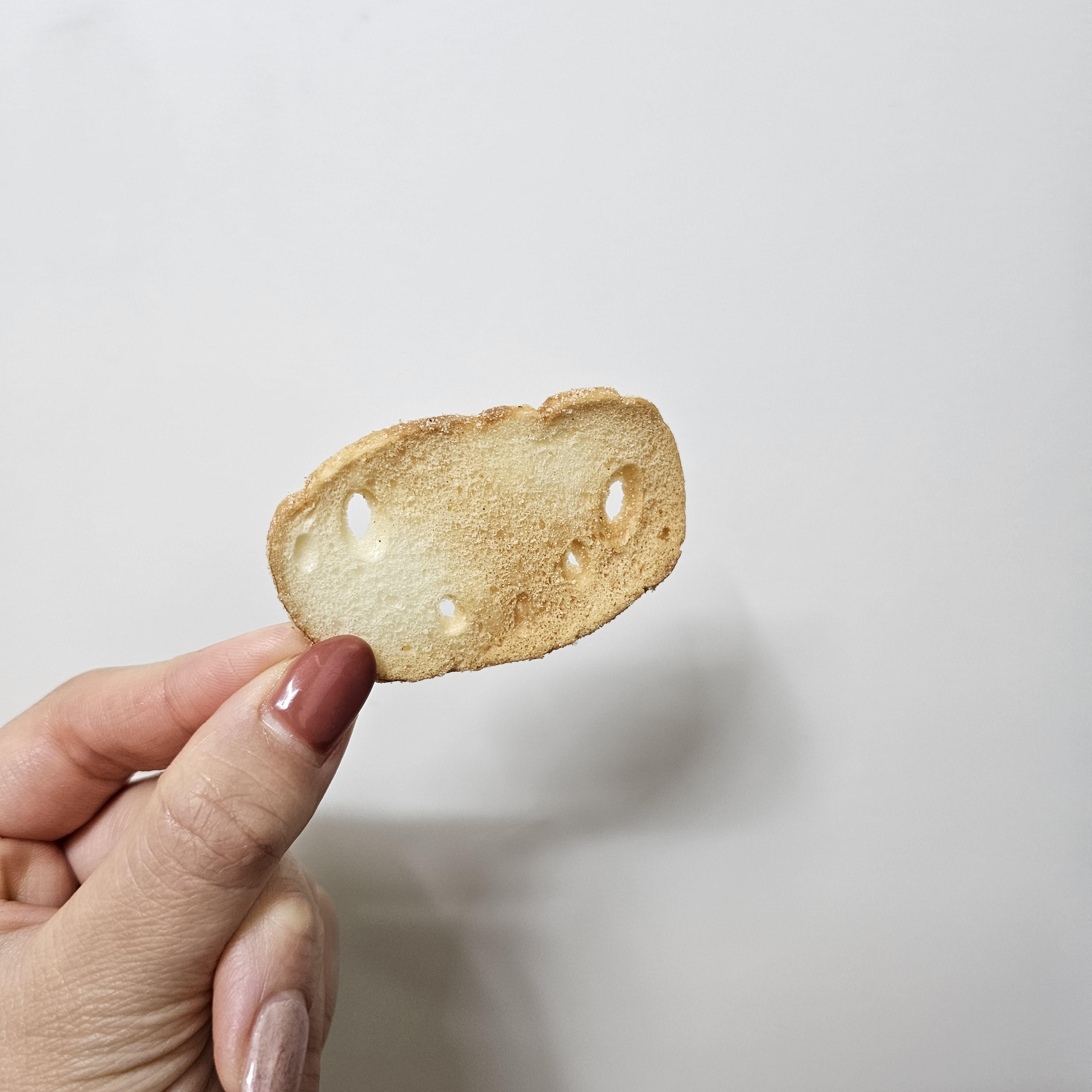 베이글이 얇고 엄청 바삭바삭하고 아주 살짝 은은하게 갈릭맛이 난다!