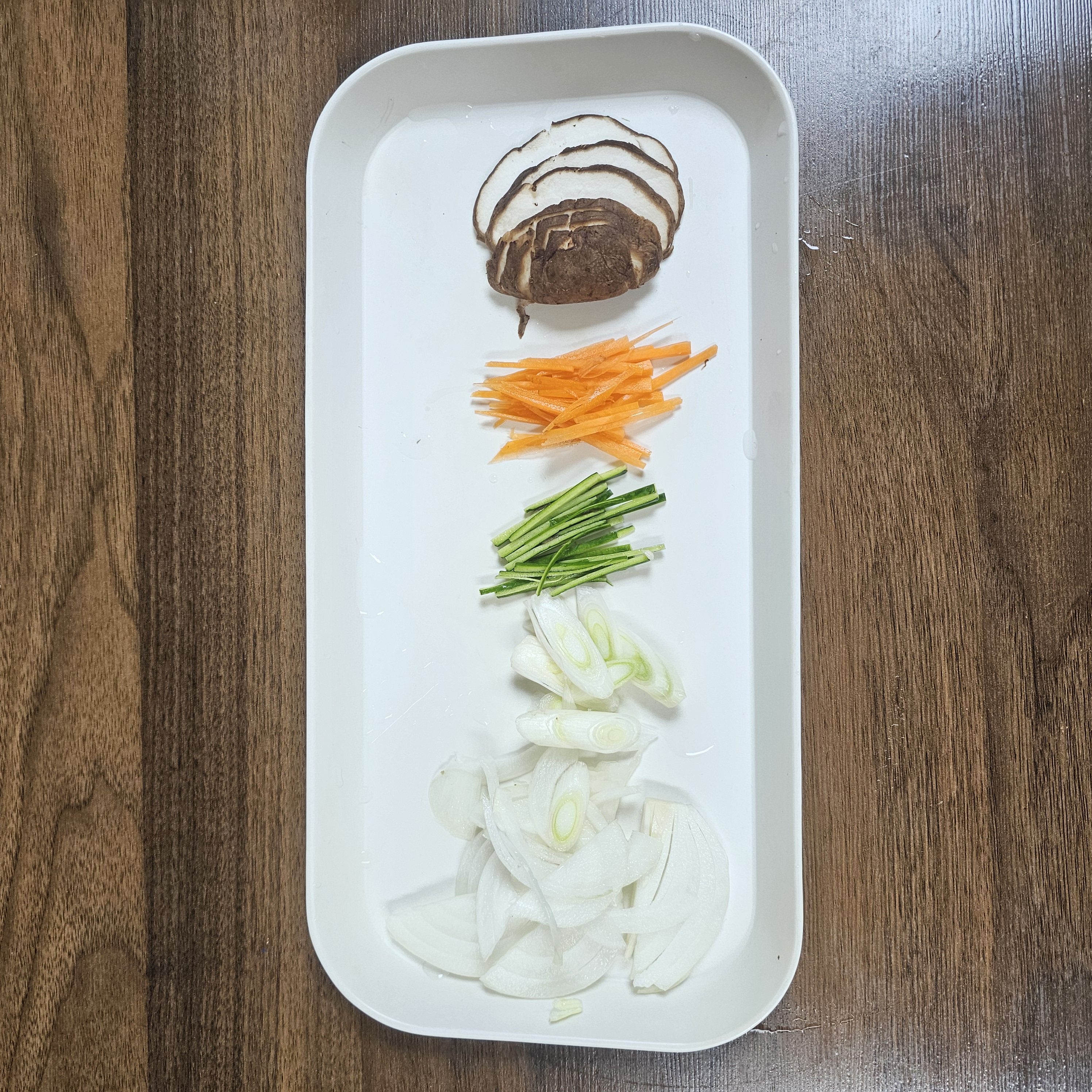 양파, 파, 애호박, 당근, 표고버섯 사진처럼 손질해 주세요.