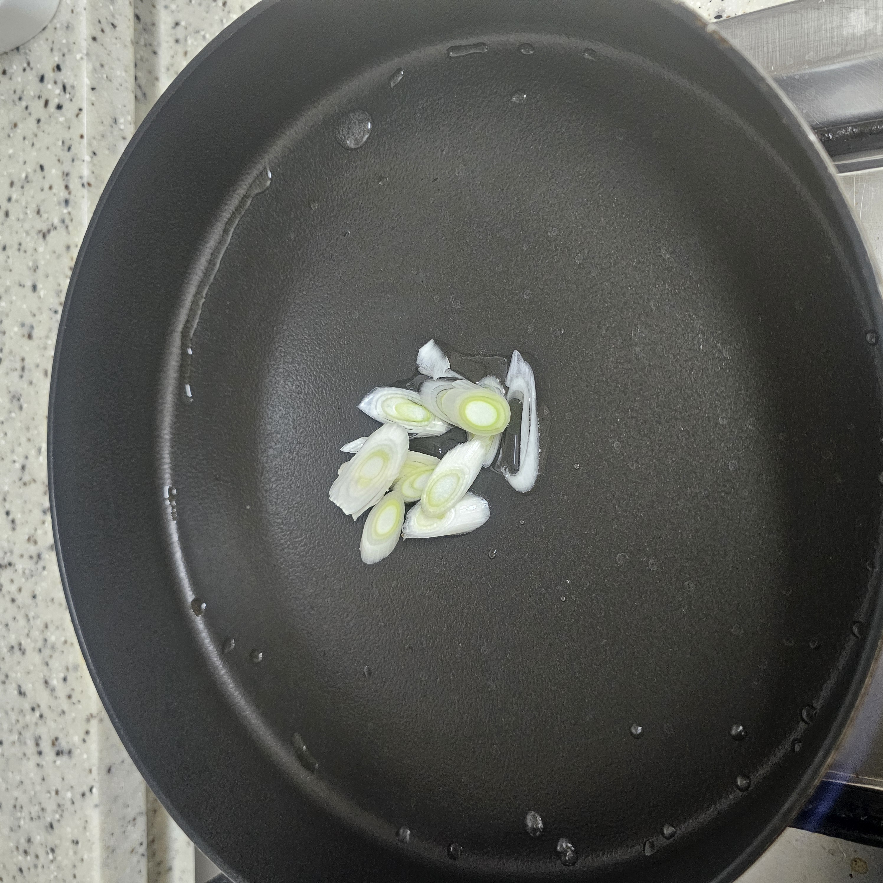 프라이팬에 기름을 두른 뒤 파를 볶아 파기름을 내줍니다.