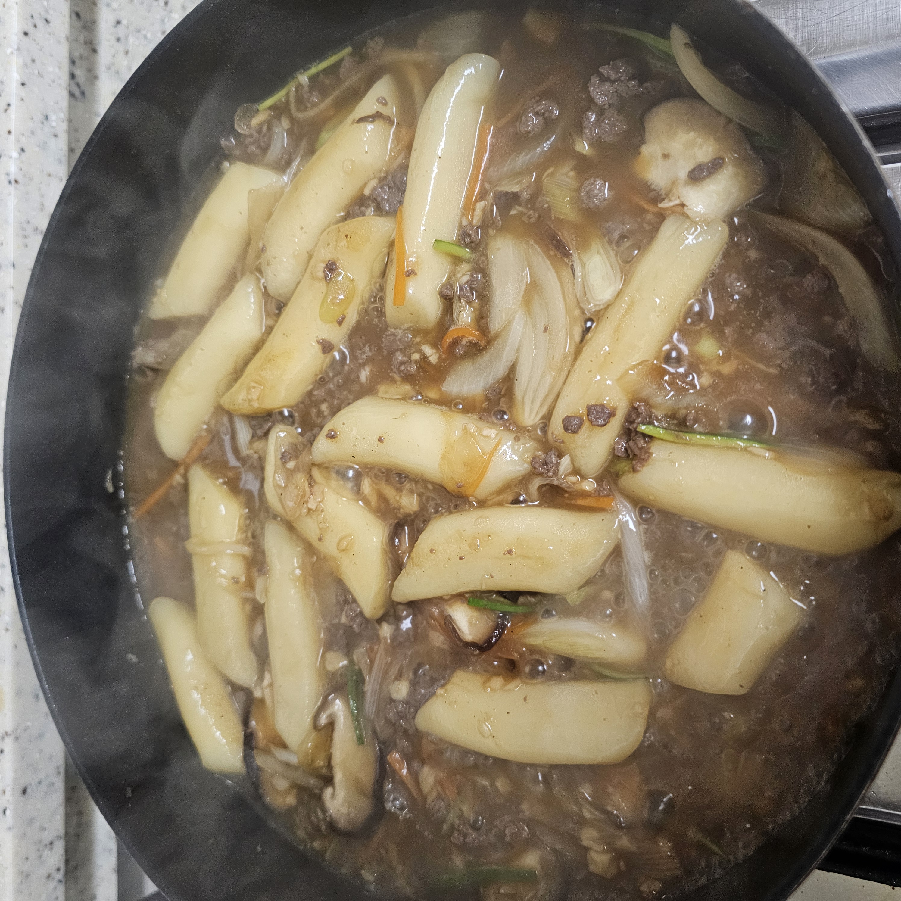 그리고 소고기가 들어가 깊은 맛이 나고 정말 맛있는 간장떡볶이!
