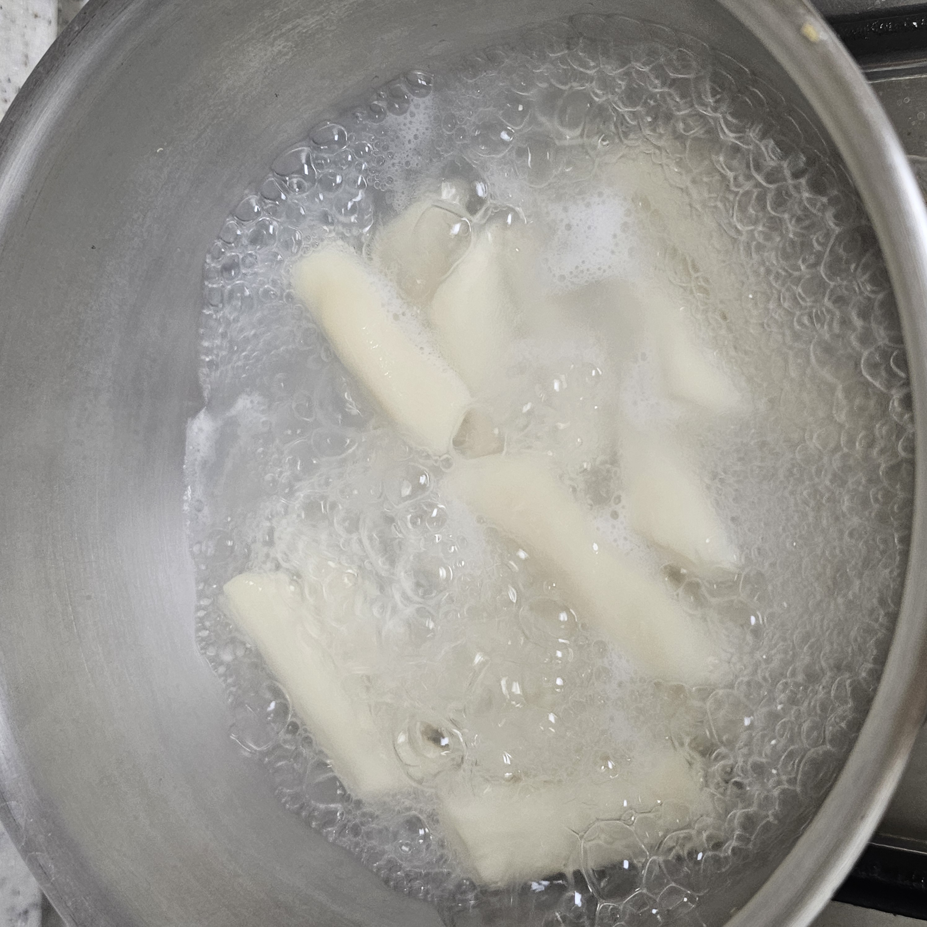 떡은 미리 해동 후 뜨거운 물에 데쳐줍니다.